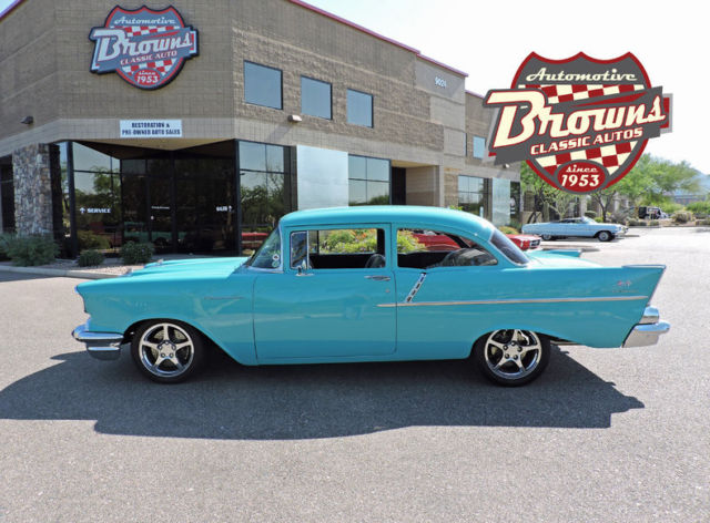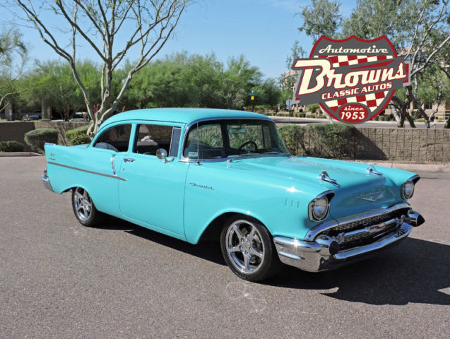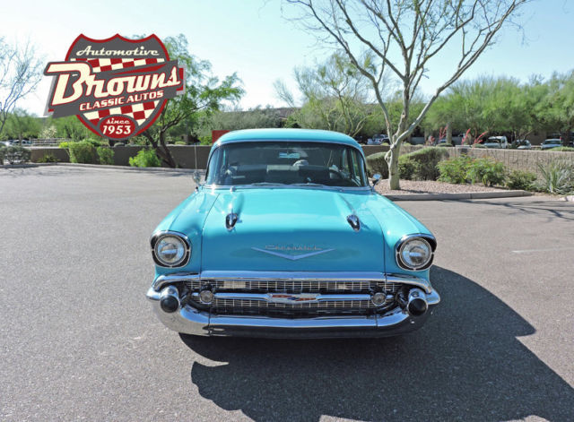 eBay template Year: 1957 Mileage: 15967 Primary color: Turquoise Transmission type: 4 Speed Automatic Engine: LS1 V8 1957 Chevy 150 LS1 Classic 50's styling with today's technology! This 1957 Chevy 150 features a Corvette LS-1 with a 4L65E 4 speed automatic transmission. Corvette Independent front and rear suspension on a Paul Newman chassis. Dana 55 Third Member 373 posi. Custom made Hooker headers and dual Borla exhaust. Z-51 Corvette Racing brakes behind the Corvette 17" wheels. Inside also has the classic look with some very welcome modern upgrades. Black and Gray leather interior by Mendoza. a 600 Watt Sony Sound System and a Dakota Digital Dash. Keeping the passengers cool in this hot ride is handled by the Vintage Air a/c unit. This is the car you've been hoping for. Classic styling but with the upgrades. features and drivability of today's cars. Don't let this one get away. call today!! Dealer's Information 9024 E. Bahia Drive. Scottsdale. AZ. 85260. US (480) 998-4300 www. brownsclassicautos. comsales@brownsclassicautos. com View Our other Auctions Email to Friend Dealer Accelerate. Visit www. DealerAccelerate. com to learn more.