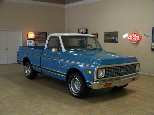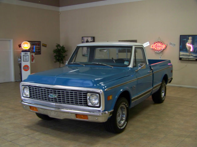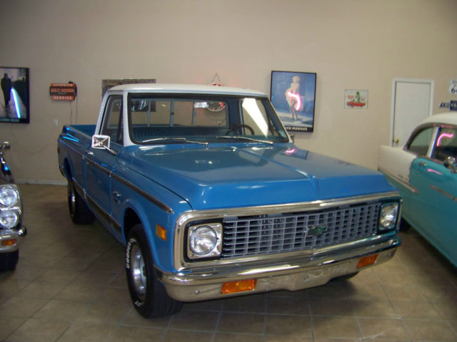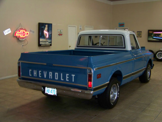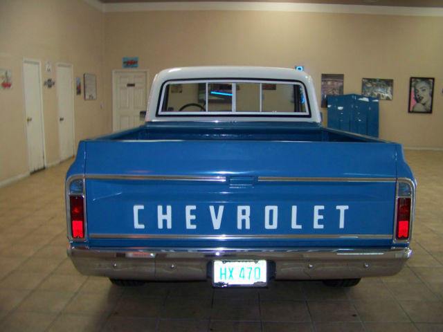 All offers will be reviewed and considered!Up for sale. 1972Chevrolet C10 truckShort bed350automaticpower steeringSliding rear glassSOLID North Carolina truck!!5 lug factory rally wheels w/ disc brakes (front) (Drum brakes on rear)Here is a very nice above driver quality 72 pick up that is ready to enjoy! If you've been searching for a nice short bed Chevy You already know trucks are hot right now and are sky rocketing in value! We recently took this truck on trade. The previous owner told us the truck had been frame up restored approx. 4-5 years and garage kept since its completion. The truck has had approx 18. 00 miles placed on it since it was finished. It has a late model 350 crate engine with an aluminum intake and holley carb and it breathes through factory manifolds with aluminized exhaust. It is mated to a turbo 350 automatic transmission and factory rear end geared good for cruising at approx. 3:55 It has a nice rumble. sounds good and runs and drives excellent! The floors frame etc are solid alsoThe paint is what I would call very nice well above driver quality But the truck has been done a few years and it has been driven and enjoyed so not flawless. It has what I would consider to be normal wear. The body is very straight. solid and shows NO signs of rust! All of the glass. chrome. stainless. emblems etc are in great condition. It is riding on factory 8 in rally wheels (5 lug pattern) and Cooper Cobra tires with about 90% tread life remaining. The truck is equipped with power steering and disc brakes. The interior was also redone at time of restoration and appears to have had new. seat cover. door panels. carpet. seal plates. dash pad and sun visors. It is clean through out no rips or tears. Va. dealer We welcome ALL serious buyers Worldwide and reserve the right to end this listing at anytime for any reason. Any questions feel free to call me any time at 276-920-1351