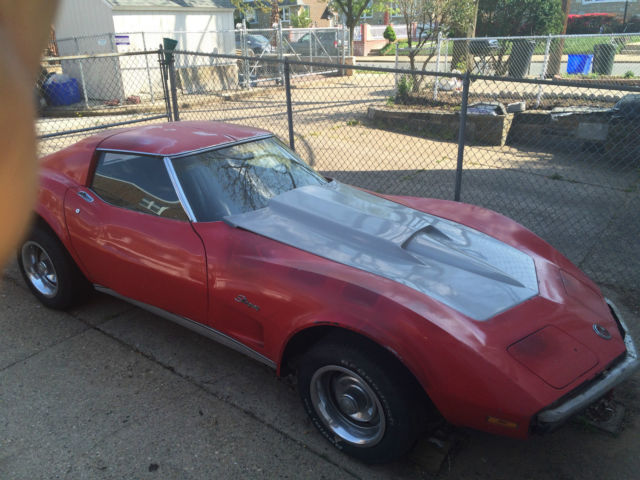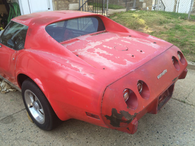 I'm selling my 1974 Corvette Stingray. This car is a project car and needs TLC. I removed the interior to restore my self but ran our of cash and time. mostly time. It has a 350(not original engine) & original 4-speed manual trans that was rebuilt a few years ago & shifts fine. The car runs strong. I've own this car for 13 years and barley drove it. only around the block once or twice a year. I have some "NEW" interior parts. but needs most of it. the seats are in ok condition with no rips. but could use the foam. The stinger hood is new and I have a new front bumper that comes with the car. I have a clean title and the recorded mileage on title is 68. 53. I'm asking $4. 00 O. B. O. If interested call 267-253-6478. Ask for Dan. Thank you .