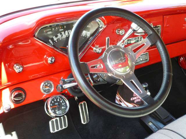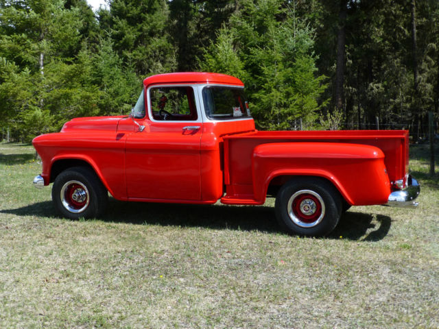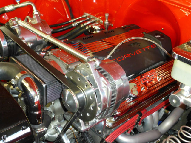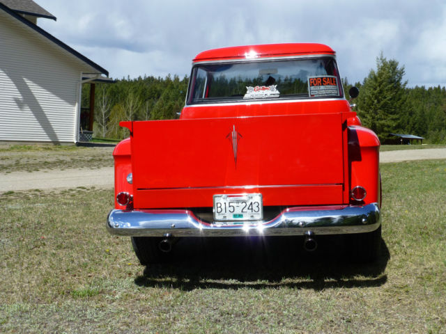 1957 Chevrolet 4X4 Engine1994 Corvette LT1 fuel injected5. 7 litre bored . 030 over roller cam comp cam 1:6:1 roller rockers GM performance aluminum D port headsSanderson 2 1/2" ceramic coated headers with Delta Flowmaster 2 1/2" exhaustTransmissionTurbo 350 with B&M shift kit. lock up converter Kugel stainless linkage with Lokar electronic shift indicatorNew process model 208 transfer caseRear endsChevy 12 bolt Richmond Locker 3. 08 gearsSuburban front rear end narrowed 4" Raybestos front drilled large rotorsRear large finned drum brakesBody Chevy Big back window cab front fenders are stock 55 new rear fenders57 hood shaved smoothed tail gate modified inner front fenders and firewallPro's Pick hidden bed mounting bolts Birch laminated boardsRick's Hot Rods Texas 22 gal stainless gas tankViper Red & Silver Nason paintNew reproduction bumpersInteriorStock dash with custom lower dash for Vintage Air and heatnew reproduction speedometer stock and Auto Meter gauges Leather Lecarra steering wheel with 1980 Olds tilt steering1980 suburban reupholstered bench seat. seat beltsClassic Industries door panels with 1957 chevy arm restsCustom Auto Sound reproduction am/fm radioIf sold to the US the seller could possibly arrange to get the truck to the Sumas Wash. border crossingIf you have any questions you can email or call Rod 250-398-6422