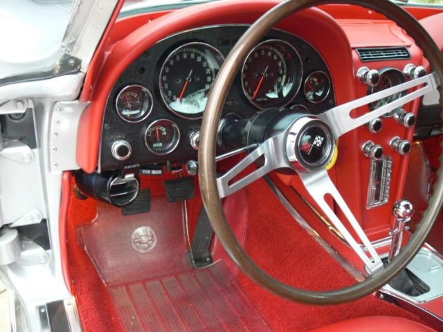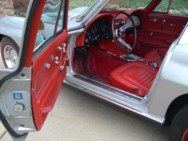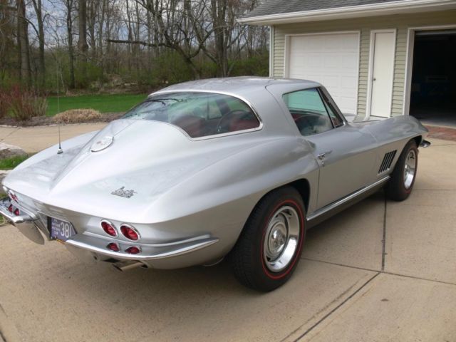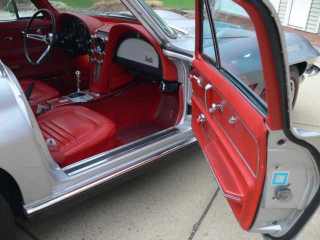 1967 Corvette Coupe. 62. 95 actual miles. Titled as actual mileage car. Numbers matching. 327/350HP. 4spd. Data plate matching rare combination of exterior and interior colors - Sebring silver and red. Factory A/C that has been upgrade to R134 components. factory sidepipes. factory headrests. factory AM/FM radio. factory rally wheels and new redline tires. posi-traction. Original manual and jack. New power steering pump. fuel pump. spark plugs and wires. many small parts. New flow-thru exhaust for quieter cruising. Lower rear panel replaced with exhaust ports. All original sidepipe parts. including lower rear panel go with the car - see photos. OEM sill trim installed. Original rear bumpers re-chromed. All other chrome in excellent condition. New taillights and bezels. new front grille. Interior is spotless. All gauges. horn. clock and lights work. Headlight buckets operate. All heat shields are new and in place. All four grounds straps are new and in place. Exhaust manifolds have been surfaced and new gaskets in place. Factory AM/FM works. Handles. runs. shifts and stops as designed. Original window sticker included - see photo. Windshield has some wear - scuffs. One 2" crack in paint behind passenger door handle. One 1/2 crack in paint in front of driver's mirror. No stress cracks. No signs of damage to body or frame. No patches. no rust. Body is extremely straight - see photos. Bird cage in order. All rubber in excellent condition. This is not a show car but it is an excellent driver condition car. It is also an antique car so it is not perfect but with care and maintenance it should give years of enjoyment and value. I am not looking to make money on this car just pay for what I have in it. I have decided to thin out my collection and move on to other things. I will be as honest as I can about what I know about the car. It's a beautiful color combination with some of the best factory options. A good faith deposit of $1. 00 is due with 48hrs of the end of the auction. Wire transfer. certified/bank check. Money Order. cash are acceptable payments. Buyer agrees to pay remaining balance due within 7 days of the close of the auction. All financial transactions must be completed before delivery of the vehicle. All shipping arrangements and costs are the responsibility of the buyer. Inspections. at buyer's expense. are welcomed. Thanks for biddingOn May-04-15 at 08:36:07 PDT. seller added the following information: 1967 Corvette Coupe. 62. 95 actual miles. Titled as actual mileage car. Numbers matching. 327/350HP. 4spd. Data plate matching rare combination of exterior and interior colors - Sebring silver and red. Factory A/C that has been upgrade to R134 components. factory sidepipes. factory headrests. factory AM/FM radio. factory rally wheels and new redline tires. posi-traction. Original manual and jack. New power steering pump. fuel pump. spark plugs and wires. many small parts. New flow-thru exhaust for quieter cruising. Lower rear panel replaced with exhaust ports. All original sidepipe parts. including lower rear panel go with the car - see photos. OEM sill trim installed. Original rear bumpers re-chromed. All other chrome in excellent condition. New taillights and bezels. new front grille. Interior is spotless. All gauges. horn. clock and lights work. Headlight buckets operate. All heat shields are new and in place. All four grounds straps are new and in place. Exhaust manifolds have been surfaced and new gaskets in place. Factory AM/FM works. Handles. runs. shifts and stops as designed. Original window sticker included - see photo. Windshield has some wear - scuffs. One 2" crack in paint behind passenger door handle. One 1/2 crack in paint in front of driver's mirror. No stress cracks. No signs of damage to body or frame. No patches. no rust. Body is extremely straight - see photos. Bird cage in order. All rubber in excellent condition. This is not a show car but it is an excellent driver condition car. It is also an antique car so it is not perfect but with care and maintenance it should give years of enjoyment and value. I am not looking to make money on this car just pay for what I have in it. I have decided to thin out my collection and move on to other things. I will be as honest as I can about what I know about the car. It's a beautiful color combination with some of the best factory options. A good faith deposit of $1. 00 is due with 48hrs of the end of the auction. Wire transfer. certified/bank check. Money Order. cash are acceptable payments. Buyer agrees to pay remaining balance due within 7 days of the close of the auction. All financial transactions must be completed before delivery of the vehicle. All shipping arrangements and costs are the responsibility of the buyer. Inspections. at buyer's expense. are welcomed. Since I've had so many inquiries about the color combination - As of today. May 4. 2015 - I have confirmed thru an NCRS judge that this was not an original red interior car. The data plate and window sticker are not original items. I apologize for this and understand anyone not wanting to bid on the car. All other details are as explained and it is still a very well sorted and beautiful combination but I will not be part of the rampant fraud that has taken over this hobby. I have also confirmed that the engine is a 327/350HP as stated. Thanks for bidding