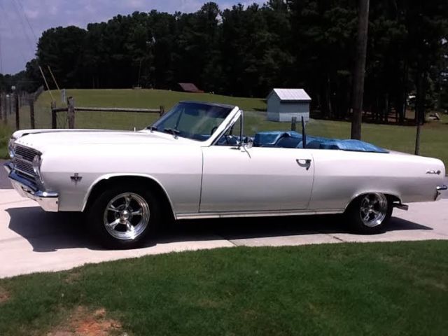 1965 MALIBU CHEVELLE CONVERTIBLE SS 283 SMALL BLOCK 4 SPEED + NEW PAINT + FRONT POWER DISK BRAKES + NEW CONVERTIBLE TOP AND BOOT + NEW LEGACY INTERIOR CARPET DOORS SEAT COVERS + FACTORY TACHOMETER IN DASH +AM/FM WITH 6 DISK CD PLAYER MOUNTED IN TRUNK + FACTORY WOOD S/S STEERING WHEEL + NEW CHROME AND STAINLESS STEEL + HOTCHKISS SUSPENSION +ALUMINUM RADIATOR +ELECTRONIC IGNITION AND DISTRIBUTOR +ALL NEW GAUGES + NEW DUAL EXHAUST + POOWER STEERING + NEW TORQUE THRUST WHEELS AND GOODYEAR TIRES THIS CAR DRIVES LIKE A DREAM FOR FURTHER INFORMATION YOU MAY CONTACT ME @SIXseven eight471-1958CAR HAS A VERY NICE CAR NO RUST CLEAN IN AND OUT DETAILED TRUE MILES UNKNOWN SHOWS 46000 TITLE SAYS EXEMPT