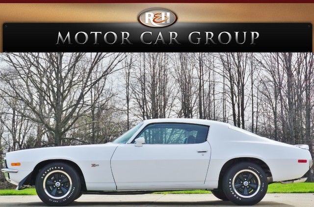 1971 Chevrolet Camaro Z/28 Call 440-914-0000 or email sales@mcgohio. com 1971 Chevrolet Camaro Z/28 True Z28. 19 car Original engine Rotisserie restored Four speed transmission An awesome LT-1 powered car! How about a clean Z/28 in crisp white? It's nicely restored. looks mean and runs hard! The exterior was done a couple years back and it shines like new. The Z28. 19 code on the fender tag calls out the black stripes front and rear. and the contrast with the white paint is awesome. New emblems and chrome. clean glass and excellent trim complement the finish. Goodyear Polyglas tires give off a great vintage vibe and tie the whole thing together. Inside. any and all wear parts were replaced. and everything from the carpet to the headliner are in great shape. The Z/28 specific 8000RPM tach and floor mounted gas pedal are original--you need to have both on a real car. Under the hood is the original CGP coded LT-1 engine. The 3970010 4 bolt main block was cast in Saganaw on January 22. 1971. and the engine was assembled three days later in Flint. both proper numbers in relation to each other as well as the car's 3rd week of February assembly date in Norwood. January 20th cast 3973487 heads are in place with upgraded steel roller rockers actuating the valves. A Holley list 4801 carburetor sits atop the proper 3959594 aluminum intake. There's a small anomaly in the VIN stamp. and if you look at the pictures you'll see it. The car's final six digits are 537368 while the stamp reads 537338. Now. either this is the original engine to this car with an assembly line error a single digit off. or someone managed to track down the engine to the Z/28 EXACTLY 30 cars later and took the motor out of it. Occam's Razor says it's the first option. Power is sent back through a Muncie four speed that's out of a 1973 Camaro. Out back is the correct 10 bolt unit (no 12 bolts at all in '71 Camaros) with the Z/28 only CG axle code. While you're underneath. notice the smooth and clean floor pans. all new lines and hardware. new fuel tank and new exhaust. This is a cool car that's just starting to come into its own. Grab this one before it's gone! At the Motor Car Group. we're enthusiasts first. We want you to enjoy your new car from the minute it's delivered and the trailer door drops. Before a car leaves our shop. it's gone through comprehensively. both visually and mechanically. We do more than just kick the tires. though: We fill your tires with nitrogen. road test (if the weather permits us here in Cleveland!) and clean it inside and out. We buff the paint using a three-step process immediately before it's taken away so that it gleams when it arrives. Every car we sell. from Sunday drivers through the rarest exotics. is meant to be driven--get out there! If you have any questions before. during or after the sale. do not hesitate to contact us. It's what we're here for! Call us at (440) 914-0000. write us atsales@motorcargroup. com or stop by and see the new shop at 6441 Davis Industrial Parkway. Solon OH 44139. We're 26 miles from Cleveland Hopkins Airport and we can pick you up when you come to inspect or purchase your car. We welcome any prospective buyers. their buyer's agents or inspectors from Monday through Friday during business hours. as well as evenings and weekends by appointment. We're car people who love what we do. and you'll feel it from the first time you contact us. Give the R&H crew the opportunity to serve you: Our passion and attention to detail set us apart! Call 440-914-0000 or email sales@mcgohio. com