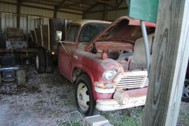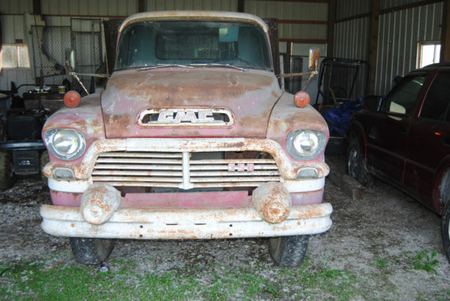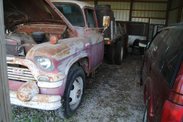 Up for your consideration is a 1957 GMC 350 Series with working hoist on back for bed. It has a 261- 6 cylinder with 4 speed. 2 speed Rear Axle. Good Cab Corners. Good head light caps. Little rust on bottom of doors. Needs fuel pump and clutch work done. Has set in the barn for 2 years. This is my opinions. please see pictures and make your own conclusions. Cab would be nice for a pick up. Doors shut good. good hinges. good cab mounts. Front end is in good shape and drives good. Good front tires and descent rear tires. This is being sold with NO RESERVE. Ask any questions before bidding. Call 812-986-2836. if no answer leave message. will get back to you ASAP. Or email questions thru eBay. It is being sold AS IS - WHERE IS. You are responsible for all shipping and cost that is concurred. We can help with shippers if needed. please contact for more information.
