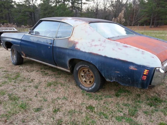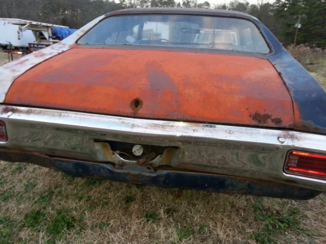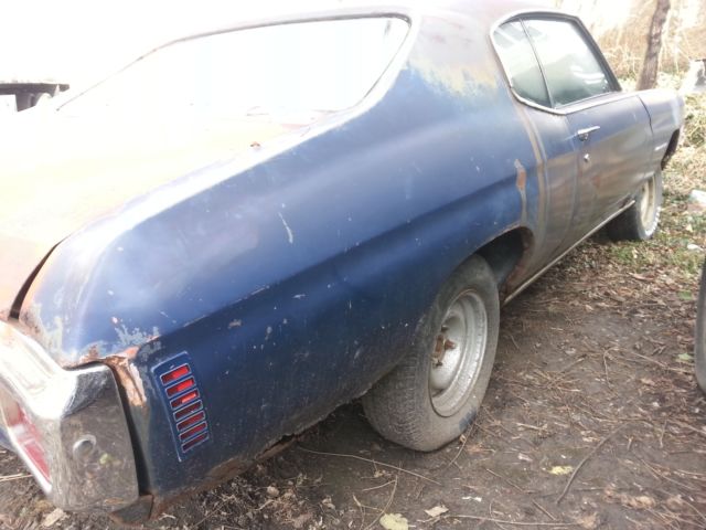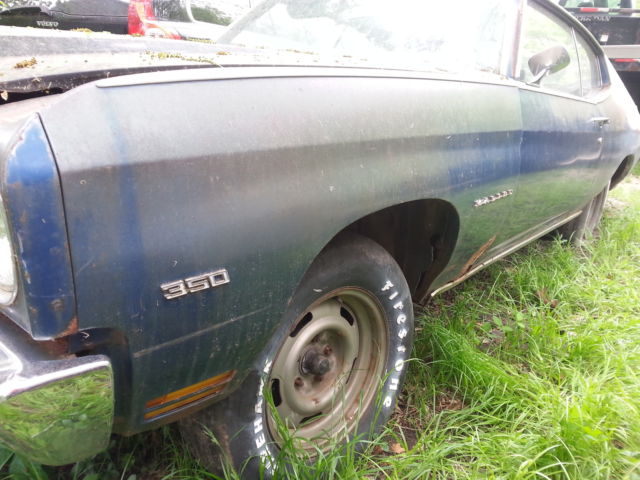 This would make a nice SS 4 speed clone. 1970 chevelle original 350 engine with manual transmission car. The motor and transmission are gone. The clutch pedal is still in the car. the floors appear to be decent. looking from the bottom up. There is surface rust on them so its hard to tell. Doors are OK on the outside will need patch work on inside corner of the drivers. All the glass is good. t is missing the rear window trim. Missing the back seat. the front seat is good. it has been recovered in the past. This is an original 4 speed car all pedals are here the original factory hole in the tunnel is still there. the steering column is not original. the engine and transmission are long gone. The car has the vin plate but it is missing the cowl tag from under the hood that tells original color where the car was made etc. however the main vin id plate is still located on the dash in the window which i posted a pic. The inner fenders are decent. The fenders has damage and some rust. Will need quarters or patch panels. The trunk will need a pan its rusted. Its a 10 bolt rear end. Did i mention it needs full restoration and it has a clean and clear Virginia title. the vin plate in the window on the dash matches and the sticker in the door vin numbers matches the title. i have others chevelles for sale locally i reserve the right to end this sale early because it its locally for sale also. ask all questions before bidding. if you wear the panties ask your wife first and make sure you or the dog don't accidentally bid. thanks for looking happy bidding cell 202-6095165