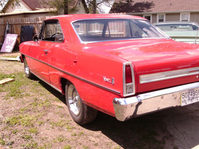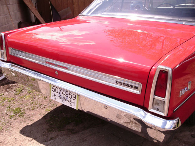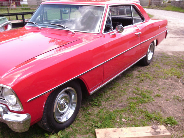 66 nova HT. car is 98 % show. bumpers could need recromed . but desent. 283 auto matic. runs good. drives good. interior perfect. all factory panels. never any rust. show paint. new dual exhaust. new gas tank. text or call for seious questions. 1-812-521-3245 I RESERVRE RIGHT TO STOP AUCTION AT ANYTIME.