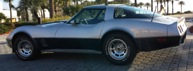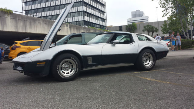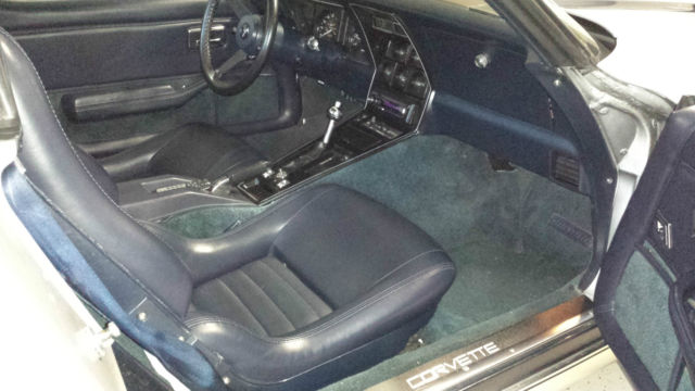 This car is in very good shape and owned by a 50+ year old adult. non-smoker. It is my everyday driver in addition to being my Saturday car show entry. I have a complete list of the many new parts to numerous to list here. Newer BF Goodrich tires. cold A/C with modern freon system. Power headlights. door locks. windows and mirrors all work. Edlebrock intake. Patriot headers and Magnaflow exhaust make this car sound great. The engine has an HEI distributor. Rochester Quadrajet carburetor. newer aluminum radiator and many chrome parts making it ready for car shows. Turbo Hydra-matic automatic transmission shifts smooth. Mirrored glass T-tops with sun screens. Silver over dark blue paint is in very good condition 33/38. Upgraded Kenwood stereo and Infinity Kappa speakers. This was Corvette number 1560 to come off the new Bowling Green. Kentucky production line after it moved from St. Louis.