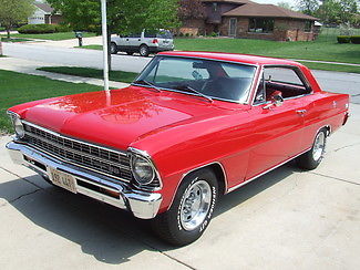 Beautiful1967Chevy Nova350 4-Speed"The Chevrolet Nova was similar to the Chevy II 100 but with greater amenities and features. Along the side were bodyside moldings. body sill moldings. and roof drip cap bright moldings. Bodystyles included a sedan. hardtop coupe. and a station wagon. Along with the base Nova. Chevrolet continued to offer the Nova Super Sport. available as a 2-door hardtop coupe. Distinguishing exterior features included a black-accented grille with the SS emblem position low on the driver's side. They had lower body moldings. body side accent stripes. and wheelhouse moldings. At all four corners were Super Sport wheel covers. rear fender scripts and full-width color accent deck lid trim panel "There are over 120 pictures of this car in the ad below. including detailed exterior. interior. engine. trunk and undercarriage. Please let them load on your computer. it will take some time because of the size. WE WILL NOT RESPOND to emails or texts asking for the reserve. or selling price. If you would like to discuss a purchase. GIVE US A CALL815-953-6843For sale by owner is this beautiful Chevy Nova SS replica. The owner just recently took this car in on trade for one of his classics. so we don't know everything that has been done to it over the years. It appears to be an extensive restoration completed about 5 years ago with some cosmetic and mechanical improvements this year. The original 6 cylinder engine is long gone and has been replaced with a 70's era 350 small block V-8. mated to a Muncie 4-Speed transmission. It was repainted Chevy Red with re-chromed bumpers and new trim added in 2015. The interior was redone with SS style bucket seats. The undercarriage appears to have been redone and is in excellent condition. This car was built for performance in mind and as such there are no power options. The gages. lights. signals. heat. wipers and windows are fully operational and the engine runs great. Vin # 115377W145379Data PlateST 67-11637 WRN 11940 BodyTR 785 K K Paint350 V-8 EngineWeiand IntakeEdelbrock 650 CFM CarburetorHeadersDual ExhaustCherry Bomb Turbo MufflersMuncie 4-Speed Manual Transmission10 Bolt RearLadder BarsHurst ShifterElectric FanAftermarket GagesMastercraft Avenger Radial TiresP-225/70R 14 Front & RearNot a trailer queen. but a very nice local car show winner. this Nova is now ready for a new owner. Please remember that this car is 48 years old and not perfect. The horn is inoperable. the headliner needs to be stretched and it needs a dome light. THIS CAR IS FOR SALE BY OWNER AND LOCATED IN ORLAND PARK. ILLINOIS 60462 Disclaimer; This vehicle is for sale by a private party and the above information was provided by the owner. We can make no guarantee as to the accuracy of the information. All vehicles are sold "AS-IS" and "WHERE IS" with no express. written. or implied warranty. representation. or guarantee (including. but not limited to; warranties of merchantability and/or fitness for a particular purpose). We shall not be responsible for the correct description. authenticity. genuineness or defects herein and make no warranty in connection therewith. Any descriptions or representations are for identification purposes only and are not to be construed as a warranty of any type. It is the responsibility of the buyer to have thoroughly inspected the vehicle as to the condition and value and to purchase based solely upon that judgment. Seller assumes no responsibility for any repairs regardless of any oral statements about this vehicle. Seller is not responsible for typographical errors. printing errors. or omissions. The description above is for information purposes only and if you elect to forgo a personal inspection. we can make no guarantees as to your satisfaction with the vehicle. The seller shall make every reasonable attempt to disclose any known defects associated with this vehicle prior to the close of sale and we make a concerted effort to describe all items accurately. but do not expressly or implicitly guarantee the accuracy or adequacy of any description. Payment; Contact MUST be made within 24 hours of auction close. Full Payment must be made to the owner within 7 days from the auction close. Forms of payment accepted: Bank wire transfer or certified funds. International sales are bank wire transfer only. CUSTOMERS WITH ZERO OR NEGATIVE FEEDBACK MUST CONTACT US PRIOR TO BIDDING. OTHERWISE WE RESERVE THE RIGHT TO CANCEL YOUR BID. WINNING BIDDERS MUST FINALIZE SALE IN PERSON. OR BY TELEPHONE ONLY! Please understand this is only to protect the integrity of the auction and to minimize fraudulent activity. If you have a classic or collectible car to sell. consider using us to advertise it for you. We are eBay specialists with 100% positive feedback. Your vehicle will be represented exactly as you see here with up to 120 high quality photos and a complete description. For further information. please give us a call 815-953-6843A FEW WORDS ABOUT OUR PICTURES; Our pictures are taken outdoors in natural daylight to show the actual condition. We feel that they show the vehicles as they really are. flaws and all. Unlike some other advertisers online. we do not use any type of photo enhancement software. artificial lighting or showroom settings. What you see in our pictures is what you get. No surprises!