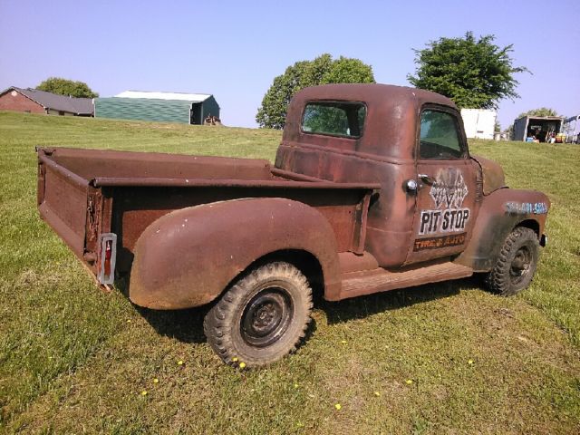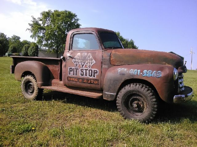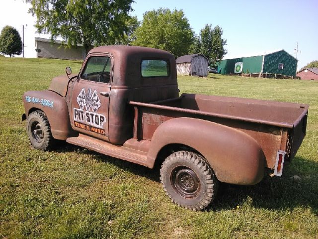 1947 GMC TRUCK. PATINA RAT ROD!!!! TRUCK IS A TRUE EYE CATCHER. SITTING ON A MID 1980'S BLAZER FRAME & RUNNING GEAR. THIS TRUCK CRANKS GOOD. RUNS GOOD. SOUNDS GOOD & DRIVES EXCELLENT!! 350 V-8 ENGINE. HEDDARS & NEW EXHAUST. POWER STEERING. POWER DISC BRAKES. 4 SPEED MANUAL TRANSMISSION. NOT GRANNY LOW. 208 TRANSFER CASE. GM CORPORATE 10 BOLT REAR END. DANA 44 FRONT END. TRUCK IS MOUNTED NICELY ON FRAME & WHEEL BASE IS CORRECT. SITS GOOD ON PIE CUTTER MUDDERS & DOG DISH STYLE WHEELS. DEPENDABLE TRUCK. RADIATOR DOES HAVE SMALL LEAK BUT EASY REPAIR. THIS TRUCK IS THE ULTIMATE IN A PATINA RAT ROD. 4X4 SUSPENSION IS STOCK WITH NO LIFT KIT. I HAVE TRIED TO DESCRIBE THIS TRUCK AS BEST AS I COULD. NO WARRANTIES IMPLIED. IF YOU ARE LOOKING FOR SOMETHING DIFFERENT. DEPENDABLE & JUST PLAIN COOL. THIS IS IT!!!!!On May-07-15 at 13:23:19 PDT. seller added the following information: THIS WOULD MAKE A VERY COOL SHOP TRUCK!! ATTENTION GETTER EVERYWHERE IT GOES. PATINA-RAT ROD- SHOP TRUCK!