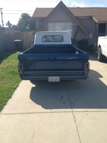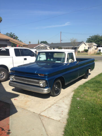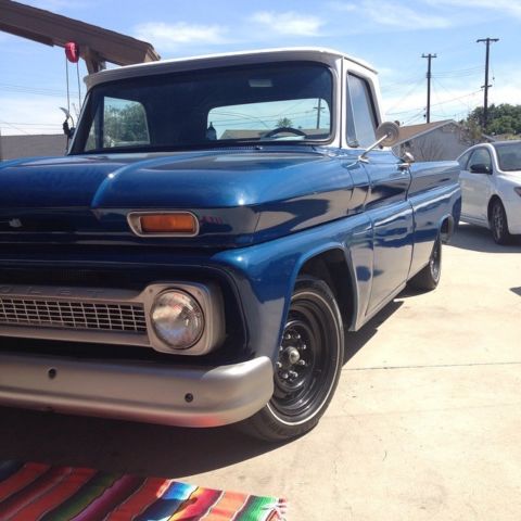 Up for sale is a 1966 Chevrolet C20 Longbed. This was a project that i bought last year and planned to do a lot more too. unfortunately I can no longer keep the truck. A lot of work has gone into this truck. there is very little rust on the vehicle. when everything was taken apart parts of the frame were sanded and painted. almost everything has been gone through and either repaired or replaced. i was told that it is the original engine and transmission that have been rebuilt within the last year. but i dont have any paper work to prove this so i will not guarantee that they are. exterior of the car is painted white on top with metallic blue on the bottom. the exterior trim is Stainless Steel color. The rear of the truck has a custom roll pan welded on that looks really nice and gets a lot of compliments. The bed has new wheel wells brand new oak slats stained and coated with 4 coats of marine grade varnish. the interior has brand new seat cover shifter carpet and radio. the shifter is custom and accepts beer tap handles. on there now is a PBR Tap handle that will be included with the truck. all the gauges had new bulbs installed and all of them with the exception of the ammeter. Under the hood is the 283 chevy small block V8 new brake power booster new alternator new radiator and fan as well as the engine dressings. The front brakes are brand new the rear will probably need to be replaced soon. new shocks all the way around. new lowering coil springs. This is not a brand new truck i dont use it s a daily driver it does have a few dings. it still needs a new choke cable and a few other pieces. I have had some fun Driving this truck around to the beach and car shows but she needs a new owner. I am also selling this truck locally and have the right to cancel the auction at any point. Im happy to answer any questions you might have. nbsp;INTERIOR new antena new carpet new door sills new weatherstripping new pioneer radio new kick-panel speakers new amplifier new capacitor new gas tank new custom shifter new ignition switch new grant steering wheel (original steering wheel still in great condition and can be included) repainted with completely repainted before everything was installed original seat was re-upholstered all lights and gauges work EXTERIOR new lights all the way around trim around all of the lights is brand new has been primed with black paint and white accents the wood long bed was stained and coated with marine grade varnish the metal trim that holds down the wood s all brand new and custom painted all rust that was present was removed and repainted to never be a problem again the overall condition of the body is pretty good it does have a few spots that need work custom rollpan installed new paint job Warranty good till april 2016 DRIVETRAIN 283 engine was rebuilt within the last year and only had a few thousand miles on it new edelbrock intake performer intake manifold new edelbrock 600 cfm 1405 carburetor new edelbrock valve covers and air cleaner new hei distributor (no points) new aluminum radiator new electric fan new alternator new battery new battery cables new automatic transmission installed when engine was rebuilt new brake master cylinder (power brakes) new front brakes (drums) new front brake lines new lowering springs all the way around new 8 lug wheels new tires the engine bay was painted when the engine was out
