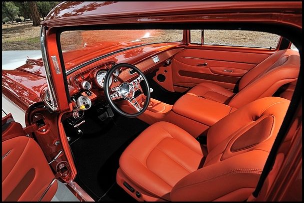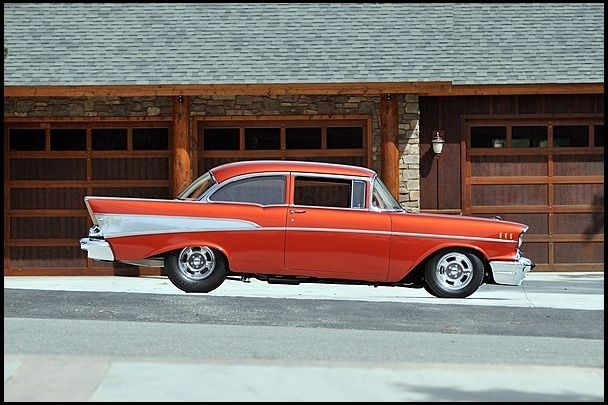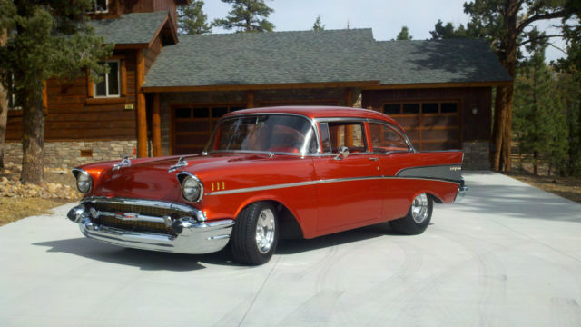 Complete frame off build completed in 2012. High attention to detail and meticulously built in my home shop. Only 350 miles since completion and not a nick or scratch on it. Engine: 540 Merlin, 640 hp on engine dyno, (have dyno sheets). RHS 340 alum head, Comp solid roller cam, Edlebrock airgap intake, MSD, 950 HP series Holley, pump gas, all built by John Beck of Pro Machine, Chico, CADrive Train: turbo 400 with Gear Vendors unit, Ford 9", 4:11s, 4 link, coil overs, tubular a-arms, frame and all suspension parts powder coated black and or silver. Hydroboost breaking, 4 wheel disc brakes.Paint: Done by Doug Starbuck of Starside Design, Riverside, CA. PPG Blazing Copper, bottom of car sprayed with black bed liner material.Interior: Done by Ron Mangus in Rialto, CA. All hand stitched leather with 7 way electric Lexus front seats, rear seat hand made. Custom Stereo system with Sub woofer and amp hidden behind seat.Custom Features: Shaved bumpers, wagon rear bumper, shaved firewall, shaved wheel wells, battery in trunk, shaved speaker grill from dash, shaved emblems from hood and rear deck lid.Awards: 2012 Grand National Roadster Show top 5 in semi custom class. Best Paint, Street Rod Nationals 2014 in Pomona, CA. Magazine: Chevy High Performance, Dec 2014…. Search: mike prey 57 chevy life burns byI have a complete photo history of the build as well as a build book and all receipts. Car drives and handles very well, interior very comfortable, and has a/c by Vintage air and all windows are electric. This is a short and sweet description. Read the magazine article for further info. Serious inquires only. Shipping: Buyer is responsible for shipping. I am Not giving quotes for shipping.