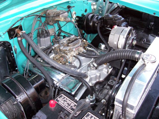 Rebuilt 283 CI 350 Turbo Automatic New Steering column with Rack & Pinion Power Steering, Aluminum Radiator, Power Brake Booster, Altenator, Starter, Battery Ball Joints & bushings, Gas Tank & Sender, All Lines Gas & Brakes, Drilled & slotted Front Rotors, ual Exhaust & Turbo Mufflers, umpers, Tail Lights, ood bar, Grill Bar, Paint & Interior. Car Has Been Garage Kept Sinse Restoration. Has 1300 Miles