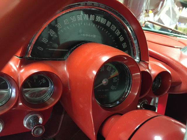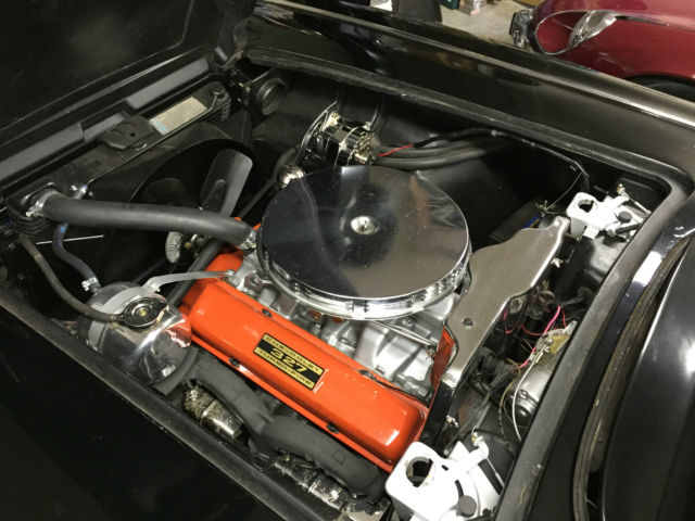 1962 Corvette Black with Red interior. The BEST color combination! NOM 327, powerglide. It has the 340hp GM intake and Dual point distributor so it could have been a high HP car? This car starts and runs great and stops straight and firm. Mechanically it is in top condition, the interior is VERY NICE as well as the chrome and stainless. The hood, doors, top lid and trunk close soundly with proper gaps and no sag. It needs body and paint to be a real show stopper! I believe this car was originally a manual because the frame has the welded bracket and ball for the clutch crossover and hole in the firewall with worn grommet for the clutch rod. The following restoration has taken place since November 2014. Fuel system, brake system and exhaust system completely removed from car. Frame was wire brushed and painted with Chassis Saver Black. The frame is rock solid! ALL NEW fuel system installed including Gas cap, filler neck with grommet and vent, gas tank, sending unit, Stainless fuel line to fuel pump, new steel line with filter to NEW Edlebrock carb with original stock air filter. ALL NEW brake system was installed including master cylinder, all hard and flex lines, new brakes shoes hardware and wheel cylinders with auto adjusters added front and rear. New drums in front, turned in rear. Front wheel bearings cleaned, inspected and repacked. ALL NEW Corvette Central Deluxe Magnaflow exhaust system from factory exhaust manifolds back including all brackets and mounting hardware. Additional NEW items: shocks, rebound straps, nbsp;lower and upper radiator hoses, wiper switch and cable, hood release cables, in dash speaker, defroster ducts, chrome alternator, fan belt, battery, points, plugs, condensers, coil, spark plug wires, fuse block, seat belts, soft top weatherstripping and hardware, radio knobs, nbsp;Refurbished or new from previous owner:Correct Harrison radiator, wiper motor, wonderbar radio(beautiful!), clock, soft-top(paper tag was on the top), heat/defrost diverter, hood releases, Things I'm aware of: heater works on hi, speedo, clock, horn, back-up, tail and license lights don't work.I feel that I am presenting this car honestly. This car is 53 years old, it is not perfect. Please look at all pictures, come and inspect, ask questions and make your determination. I am offering this car locally so I reserve the right to end this auction without notice. Oh ...one more thing. PLEASE ask you significant other if you can buy it AND check your bank account BEFORE you place a bid! Thanks, Mike On May-19-15 at 07:00:01 PDT, seller added the following information:Horn and tail lights work. Sorry for the confusion.
