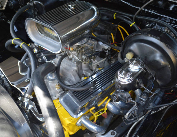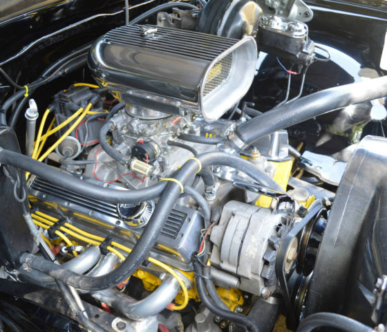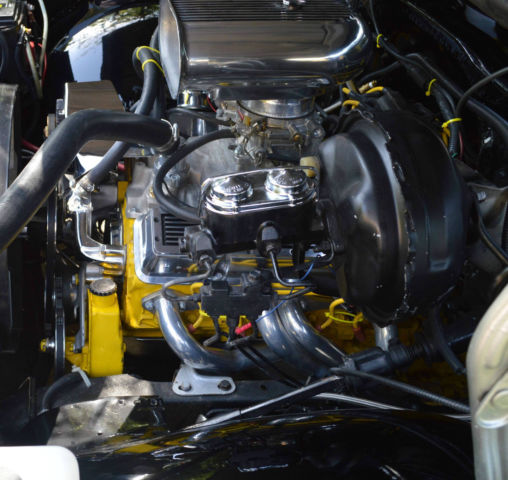 Edelbrock carburator, chemical coated headers, lots of chrome