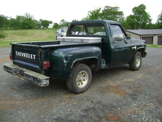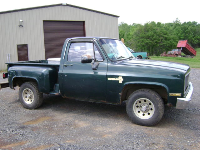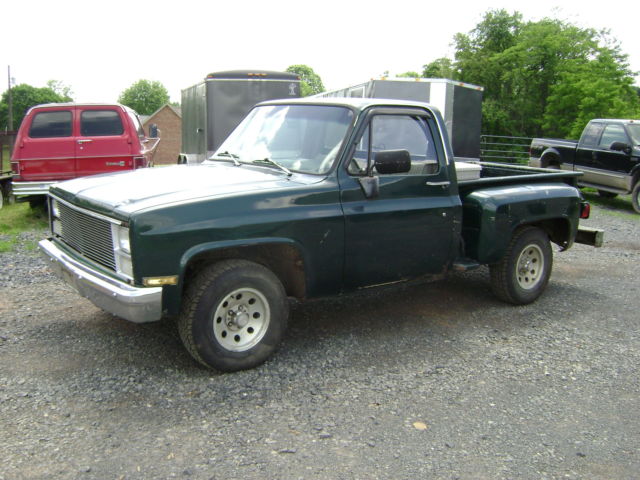 Up for sale: 1983 Chevy Stepside pickup!!The truck has a straight 6 cylinder engine, with a 4 speed transmission.It runs and drives, with good brakes, exhaust, lmost new tires. It has it's bumps, and rust here and there, but the chassis is clean. It was bought as a project, that has not been started. I have an extra bed, fenders, and hood (all GM), to go with it. The tool box goes with it also. It's a base model truck, with no power options. We all know what these square body trucks are worth, please don't waste our time with insulting offers. The truck is priced fairly @ $2750.00, all reasonable offers will be considered!! If you have any questions, CALL ME (no emails or texts) @ (703)380-4863......Jimmy Thanks for looking, and have a great day.