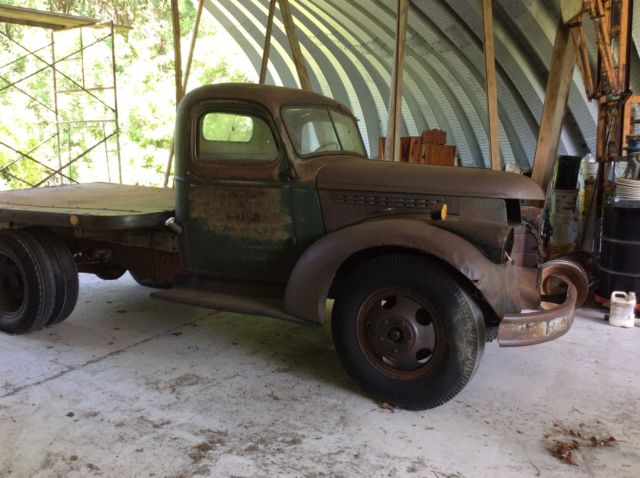 1.5 ton flatbed dually. 134.5 inch wheelbase. 222 7/8 inches long (~18.5 ft). 87.5 inches total width.13500 lbs GVW. Pulled out of barn in Great Falls Montana. Montana title in hand.Missing the grill and the seat but the rest apears to be here.May run but haven't tried because buyer may want a power plant swap.Hard to find them this rust free on this side of the country. Cabs like this can be placed on late model frames with modern running gear.Could be restored to original and utilized for a business to haul stuff.Could be used as a prop for the right business will pay for itself in no time.Selling my relics due to pending adoption expenses.Priced right considering condition rarity and cost to ship it from a dry state.Save yourself the hassle and cost of extensive body work. Also they are only original once!