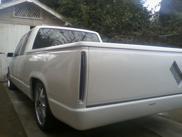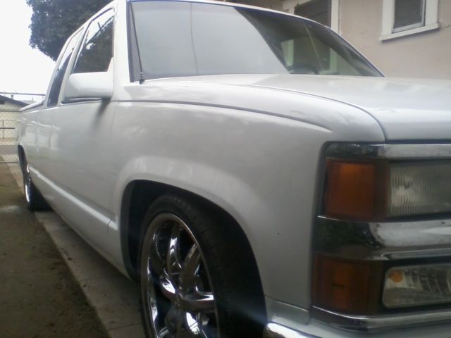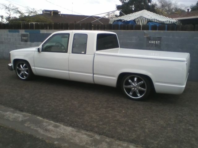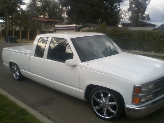 1994 white Chevy Silverado Extended Cab customized pickup bel tech suspension 2 - 4 drop kit20" low profile wheels air condition works good new exhaust system Cadilactaillightsruns good excellent condition call Paul 559-458-3618 asking price $4500. O.B.O