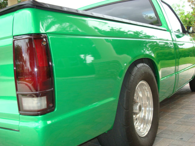 SELLING FOR GOOD FRIEND WHO JUST PURCHASED THIS TRUCK. SOME BAD LUCK(LOST JOB AND HOUSE)FORCED HIM TO MOVE BACK TO OHIO COULDN'T TAKE TRUCK AND NEEDING THE MONEY ASKED IF I COULD LIST FOR HIM. THIS TRUCK HAS A CRATE 406C.I./500H.P. MOTOR WORKED T.H.400 TRANS WITH3500-4000 STALL CONVERTER373 REAR. CAR HAS SANDERSON HEADERS W/3IN. COLLECTORS FLOWMASTER EXHAUSTWITH DUMPS. MSD IGNITION AND BOX NEW FUSE BLOCK WITH ALL NEW WIRING. NEW ALL ALUMINUM RADIATOR NEW QFT 750 CARB. WHEELS ARE WELD CENTERLINES FRONT:15X4 (MT/SPORTSMAN S/R TIRES) REAR: 15X8 (MT/ET STREET RADIALS). 4 IN. COWL ALL FIBERGLASS HOOD GMC FRONT GRILL AND TAILGATE HAS G.M.C. EMBLEMS ALSO DOOR HANDLES ARE SHAVED AND WORK REMOTELY ALL LIGHTS WORK. SUNPRO GUAGES SPORT COMP SUPER TACH. B&M OLD STYLE SHIFTER RACING SEATS W/ HARNESS.ROLLBAR. FRIEND ALSO BOUGHT STOCKBUCKETS AND DOOR PANELS TO MAKE IT AMORECOMFORTABLE STREET CAR HE COULDN'T DECIDE. CAR HAS CLEAN CLEAR TITLE IN-HAND AND HE TRUSTS ME TO COMPLETE DEAL. THIS TRUCK IS LISTED LOCALLY AND EVERYWHERE(HE NEEDS THE MONEY) SOI RESERVETHE RIGHT TO END AUCTION AT ANY TIME! NO RESERVE AUCTION THIS TRUCK HAS TO SELL. THANKS FOR LOOKING!!! FEEL FREE TO CONTACT ME FOR ANY QUESTIONS YOU MAY HAVE OR ADDITIONAL PICS YOU NEED. 500.00 NON-REFUNDABLE DEPOST DUE AT END OF AUCTION