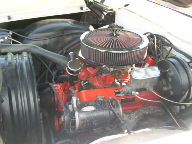 Interior is in excellent condition withNo rips in seats door panelsor white headliner and shows no signs of wear.Rugs are like new.It has been repainted also to a Bright White and which is very good also. No dents chips or rust. All Chrome and moldings are very good (Bumpers have been replaced andare excellent) All 4 Tires are like New.