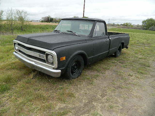 1967 chevy c10 2 wd pickup a western pu has a sbc 350 ?? not sure has hei disb 4 bbl carb auto trans power brakes and has a a/c box but no hoses or comp or cond. runs well has headers dual side exit exh. the body is ok the bed has its driver side dent issue and the pass has a spot the inside of the bed all in all is desent has the one rust hole showen in the pics . floors have some rot but not real bad. looks like the rockers were replaced at one time good windshield ITS NOT RUSTED ABOVE THE WINDSHIELD INSIDE OR OUT now your prob saying its not a 67 it has a 69or 70 grille etc your right on the grill but the cab is a small rear window with prob a hard to find rear slider window. the seat is ok not fact the dash pad and the visors have been redone at one time. i do have a matching vin # title that matchs the trucks cab. some one has lowered the truck some not sure on how they did it heated the springs ??? no idea for sure. the body is wearing a flat black paint job with body defects showing. I WILL BE HEADING BACK EAST MOSTLY ALONG I80 THUR PA will leave on JUNE 3 or 4 th so if you want it to go on the trialer buy it soon or it stays home !!!! CAN DEL IT ALONG THE WAY FOR 0.75 A MILE WITH A 500.00 MIN CHARGE EG YOU WANT IT DEL IN WESTERN IOWA ITS A MIN OF 500.00 DEL CHARGE . IT ALL HAS TO BE PAID FOR IN ADVANCE OR ITS STAYING HOME PLEASE CALL 308-631-5635 FOR MORE INFO THANKS ! SOLD AS IS NO WARR NO RETURNS ETC IF SOME ONE DOESNT WANT THE ENGINE ILL TAKE 200.00 OFF THE PRICE AND TAKE IT OUT I CAN USE IT IN A V8 S10 PROJECT THE ENGINE IS NOTHING SPECIAL WOULD LEAVE WITH HEADERS TRANSMISSION ETC