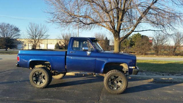 85 k10. 6" lift 3/4ton axle swap sbc 350 turbo 350 trans np205 transfer case 35x13.50x20s mickey Thompson atz on 20x10 8 lug rockstars. Has a new dash pad and Procar seats. The bed and the floor of the truck have been sprayed with bed liner. This can be a daily driver. Runs and drives good.