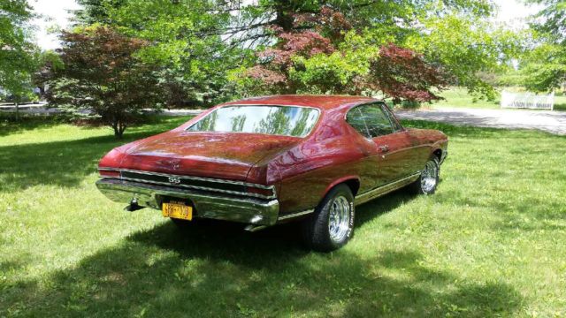 This true SS car has been driven 950 miles since a complete frame off nut and bolt restoration and is in better than new condition. The frame was sandblasted and re-coated. Then an all new upgraded tubular suspension was added including front and rear sway bars CPP 14:1 power steering box all new stainless steel brake and fuel lines 4 wheel power disc brakes and e-brake. All supported by new 15" Cragar SS rims new BF Goodrich Radial T/A tires and the original 12 bolt posi-rearend with 4:56 gears. The shell of the car was stripped and primed. The underneath of the car was sealed with chassis black and then undercoated. Then the shell was set back on the frame with all new urethane body bushings new grade 8 bolts and washers. All body panels were pre-fit and checked for proper gaps then the car had a base coat clear coat show quality finish applied. All new wiring was installed from the headlights to the tail lights including a modern fuse block. A new gas tank was installed with new straps and an electric fuel pump. The Drivetrain was then installed and is a fresh period correct 68 427 435HP L71 big block. It has been completely rebuilt with all new parts while using the original block crank and heads. Some of the new parts added were a 750 Holley Edelbrock air gap Durashine aluminum intake MSD ignition 10:1 compression domed forged pistons roller rockers solid lifter cam high flow water pump dual fan aluminum radiator Hooker ceramic coated headers and a dual Stainless Steel Magnaflow exhaust. The new Tremec 5 speed overdrive manual transmission with new clutch pressure plate and throw out bearing combine with the 4:56 gearing to allow the car to travel 55 mph at around 2000 RPM. The black bucket seat interior with console and tilt wheel have been all redone with new upholstery. Dynamat was added to reduce heat and road noise then a new carpet and headliner were installed. A new 3 point restraint system enhances safety while a new Dakota digital dash with full gauge readout and tachometer enables quick and clear feedback on all critical aspects of the 427. The sound system was upgraded to a Kenwood stereo with Bluetooth 1200 watt amp 10" sub and full range speakers. The project was completed with all new chrome emblems and trim. Over 100 pictures of the restoration process.......