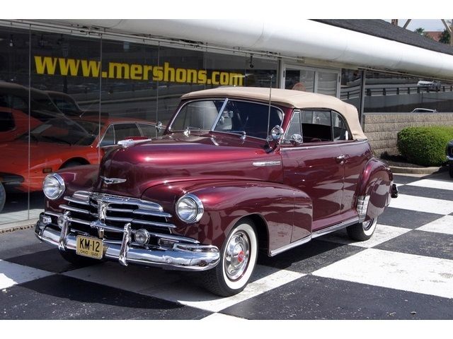 1948 Chevy Fleetmaster Roadster equipped with a 350 V8 and Automatic Transmission. Beautiful Burgundy Metallic Exterior with Two-Tone Burgundy and Tan Interior with a Tan Soft Top. This car features Air Conditioning Power Soft Top Power Windows (front) Power Steering Power Brakes Cruise Control AM-FM Radio with Cassette and Tilt Steering Column. Just in on trade from it's longtime owner! This car runs drives and sounds awesome! Drives tight and is as mechanically dialed-in as they come.. Fly in and drive it across the country! Stunning cosmetics with exceptional paint chrome and trim. Great looking color combination on a solid old Chevy that's not going to be anything like what the neighbor is driving! This is such a very well done with all the right new stuff... it feels right looks right sounds right this has definitely made a few of us here including myself wonder if we have enough room at home for another vehicle! We're car guys if it has 4 wheels we'll consider it on trade!