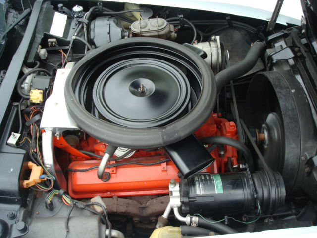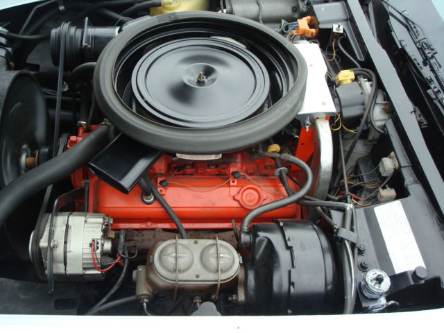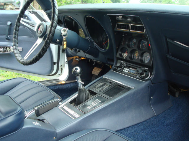 Adult owned extremely nice one year only example offered at no reserve. All stock engine numbers matching L48 350 cubic inch V8 4 speed manual Muncie transmission PS PB PW cold factory A/C. Exterior is Can-Am white clear coat finish over medium blue interior. Exterior and interior colors are not original to this car. Features upgraded original style fiber glass bumpers front and rear. Many new parts. Car has not been used and in dry indoor storage since 1994. Clear NJ title with 80720 original miles.