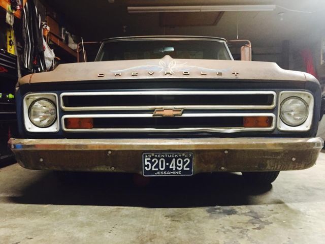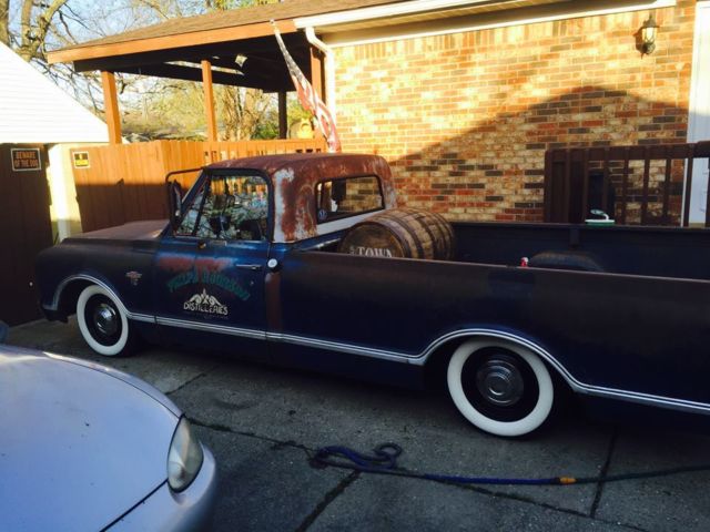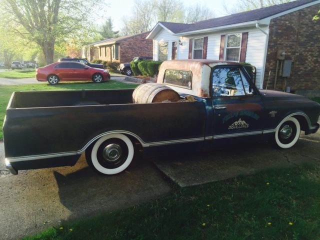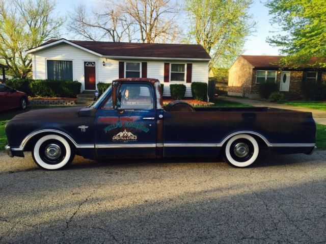 This is a 1967 Chevy C-10. I bought it from the gentlemen that did all the custom work. He bought it from the original owner. Truck runs great. Has a brand new Optima gel pack battery in it. Very dependable truck. Has the original 283 V-8 with a 3 speed manual transmission. Shifters been moved from the column to the floor. Motor and brakes were completely rebuilt. Carbs been rebuilt and rejetted. Fuel pump was replaced exhaust from the y-pipe back was replaced all new shocks new carrier bearing and u joints all the lenses and bulbs were replaced as well. Interior has been freshened up also with new door panels seat was covered in new leather by Sewn Tight interiors in Sheperdsville Ky. Has a kick ass stereo in it. Bluetooth CD player Infinity 6x9s in the doors and tweeters in the dash. Also has a bazooka tube behind the seat. The door glass was replaced as well as the window gaskets. New rubber flooring with the sound deafening material was put in too. It's been c notched 2" in the rear and the shock mounts were relocated. Has a really cool Kentucky Bourbon theme. Has an old whiskey barrel bag of wheat and a box of corn in the bed. Interior has a bunch of labels from bourbons produced in Kentucky. THIS TRUCK DOES HAVE SOME RUST AND DENTS AND DINGS. Bed has some rust spots all the way through back towards the tail gate about the size of a baseball and below the doors is pretty bad as well. Has a lot of patina. Tail gate does not open. Feel free to ask any questions. Located in Louisville Ky 40272