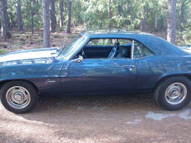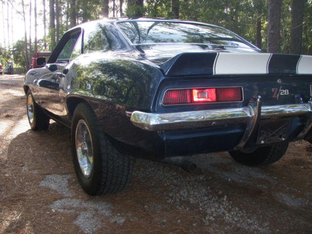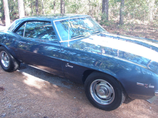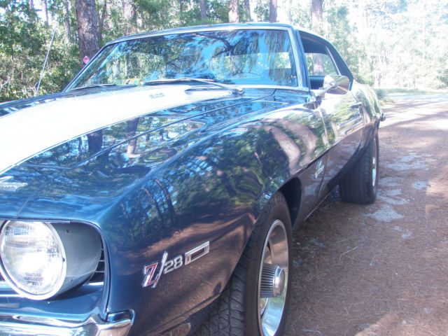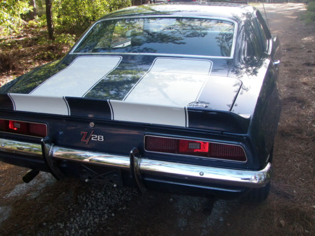 Matching Numbers Z/28 in Dusk Blue. I bought this car in 2004 and I was going to keep this one till the day I die just because it is gorgeous Dusk Blue and it has the drive train that it was born with. The car had a mild restoration before I purchased it in 04 new paint few parts were re chromed & plated . I have not done anything except store it in my garage under a cover. With that said I will only sell the car (no trades) since I need the money to buy land. Again I owned this car for 11 years and now it's time to let it go. I have owned many 69 Camaro(s) and I can say you will be happy with this one. THE CAR IS NOT A SHOW CAR AND IT'S NOT A DRIVER. What I mean by that is it can be a show car with some detailing like changing some of the bolts the hose clamps changing ignition wires changing battery changing tires front grill etc. etc. It will never be a driver because it is just too valuable to drive up the street. So yes I'm aware of all the nit picky things that are not correct with this Z/28 so PLEASE don't email me and say the water pump bolts are incorrect as I already know that and I'm disclosing the fact that it's not a show car. If you buy it you can make it a show car with little effort. For those of you who realize finding a "born with drivetrain" in Dusk Blue is something that interests you shoot me an email and lets try to work out a deal. There is no rust to speak of as this car was undercoated early in it's life. The paint is AMAZING and was hard to take photos with the reflection. Again I've never had it outside my garage. Inspections are welcome. I am posting photos of the important drivetrain components. If you need help in decoding the car please do a google search on CRG which is Camaro Research Group.VIN#124379N705869INTERIOR TRIM=715 (Dark Blue)PAINT CODE=51-51 (Dusk Blue)BUILD DATE=10E (Last week in October)X77-D80= (Z/28 with rear spoiler)Very important that VIN numbers are on both the engine and the transmission. SEE PHOTOS I DO NOT HAVE THE PROTECTO PLATE BUILD SHEET OR ANY DEALER DOCUMENTATION