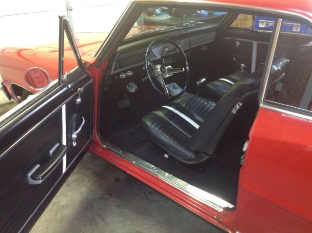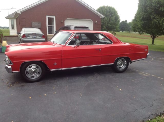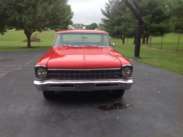 1967 nova SS 118 car was in the same family for 30 yrs stored in garage for the last 5yrs was painted about16 yrs ago in lacquer red paint ( car was original marina blue). The car has nice black SS bucket seat interiorThe son in law I got the car from said it was the original 327 block but had been modifiedthe power glide tranny was replaced w/350 turbo w/2500 stahl. 10 bolt rearend w/ 373 posi that seems to be set up wrong because it's noisey I have drove the car about 500 miles since I've have owned it( no problems at all ) still has manual drum brakes and steering. The car was repainted in lacquer so it has severe cracking so I tell people it is a 5 footer(looks awesome at 5ft) has driver friendly dents and dings appears to be 14x6 and 14x7 rally's car drives just as good as my 72 which everyone says is unusual floor pans seem to be very good would need trunk pan to take to next level all gaps are great seems to be original chrome on car would make a nice car that can be drove like it is or drive while you restore it a awesome ride for a 1967. All glass in great shape all gauges and lights work wipers work foresure every time I've drive it it seems to rain. Any other questions call Mark at 270-668-8259 NOT RESPONSIBLE FOR SHIPPING CASH BANK WIRE