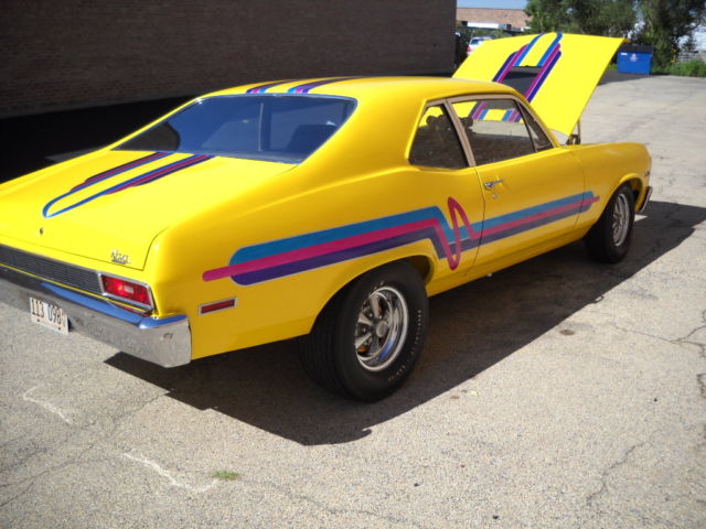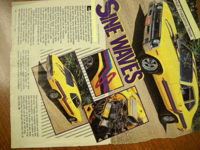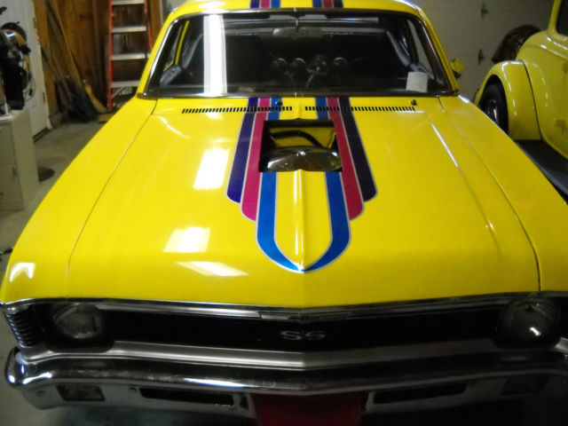 1970 Nova SS purchased from original owner in 1974. I redid this car several times during my 20s with the current state completed in 1985. It was featured in Car Craft 1986. THIS CAR IS A TIME MACHINE. It has all the goodies for that time period. .030 over 350 with 4 bolt mains TRW forged pistons turbo angle plug heads 30-30 off road solid cam good GM rods and forged crank balanced Edelbrock tunnel ram w/2 600 holleys( since replaced with a single 750 double pumper but T-ram goes with the car). The car was an original 4 spd but converted to a TH 400 having a 12 bolt posi with 4:88 gears. The car is an original SS with power disc brakes the only power accessory. Car originally maroon on color came with a 4 spd rubber mats and a bench seat. Buckets have been added and I did a make shift carpet (repops weren't available yet). I left the clutch pedal to confuse people and have some of the original linkage. The car was completely disassembled the underside was stripped and painted subframe was redi-stripped and painted. There is much underside and engine compartment chrome. I have the proctecto plate. The car has always been sored inside and has seem very little mileage since completion. It's time to move on and let someone else enjoy this Nova. I understand the car could benefit from some upgrades and the color and paint scheme may not be to everyone's liking but the car came apart once and will come apart alot easier the next time. I'm sure there out there but when was the last time you saw a 2 owner 1970 Nova SS. I may have forgotten some details so please ask before bidding as I don't want or need any disappointments. Inspectiona are advise and welcome. A $500 non refundable deposit is due with 48 hrs of auctions end. Buyer is responsible for any transportation costs. Thank you.