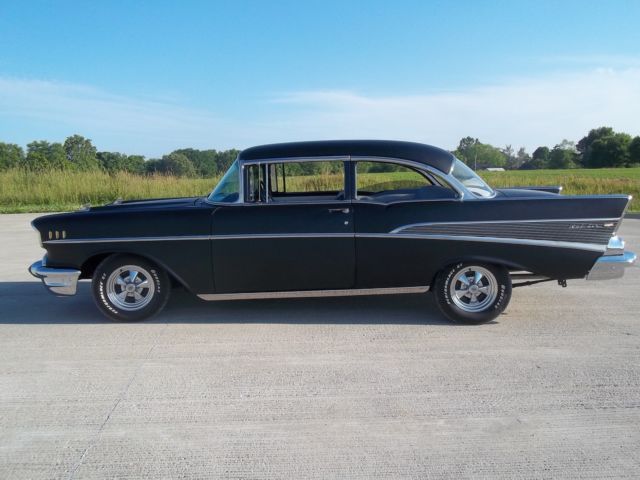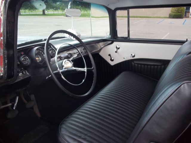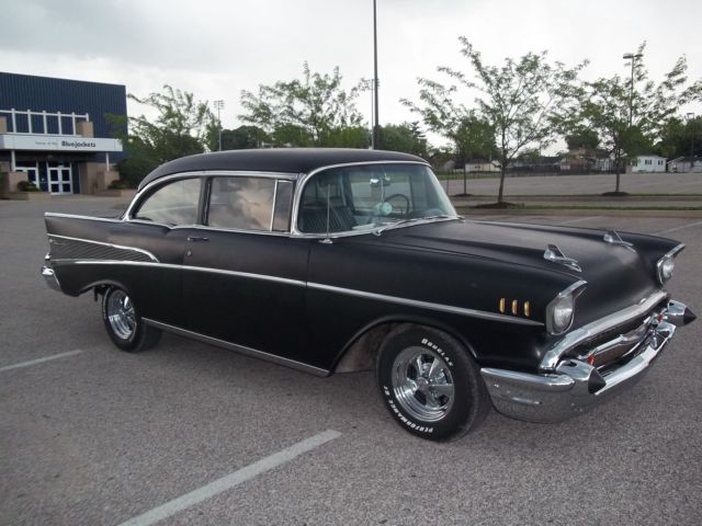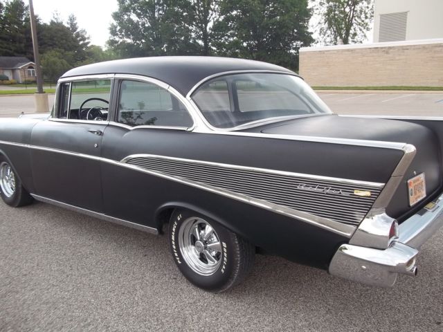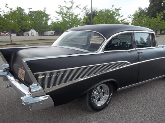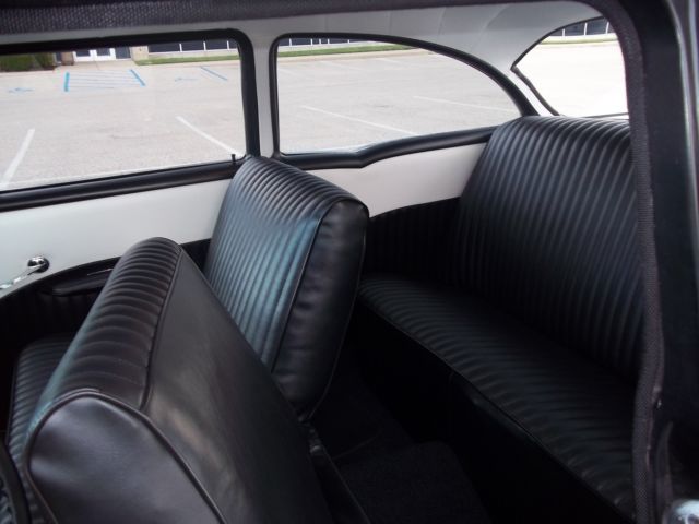 True V-8 Belair car, uns and drives excellent. Has 1955 265 CI engine (rare). Original 3-speed on the column manual trans. Extremely solid car, o rust in floors, runk, uarters, ockers, tc. All lights, urn signals, orn, ipers, heater fan, auges working properly. Radio, lock and odometerdo not work. Satin black exterior paint. Chrome has good shine and appearance overall, river quality; some pieces scratched or dinged. All brand new custom classic black and white interior. All glass good. All windows work. New Cragar SS wheels and tires. Also comes with all four original 14 in steel wheels, ainted red with new wide white wall tires and original hubcaps (as pictured in trunk). New gas tank, ront springs and shocks, xhaust, nd weather strips. All brakes good, ront end tight, ides very nice. A true turn-key and go car! Looks great, ots of thumbs up when driving. Vehicle is for sale locally; I reserve the right to end the auction early.Please email for more information/questions.