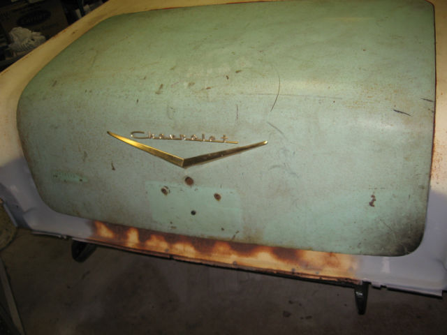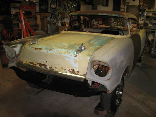 Hello All, ere we go-this a 1957 Chevy 2Dr Hardtop with a Clean Illinois Title in my name. Lots of the big metal work has been done,This will make a nice Ride for someone who has the time to finish it. The floor & Trunk floor have been replaced with nice USA stamped steel, lso the rear quarters have new patch panels as well. Doors are in great shape as is the deck lid, the hood & fenders could use some work. Frame has been cleaned and painted, ost all brake lines have been replaced. Rear-end is a 10 bolt posi out of a mid-70's camaro-411 gear. The Rear-end also has 2 sets of leaf perches welded on it, ne set for the leaf springs in the stock position and one set for the leaf springs to be moved under the frame (as to get a bigger tire under the wheel-well). The wheel-wells could use some work if the new owner thought about putting in mini-tubs. The front end suspension has new polyurethane bushings and new coil springs.The car has wheels and tires that are just rollers for moving the car around. Hopefully the Pictures say enough. There is also Power-Assist power steering and the steering-gear box seems to be in good shape. I also have a straight-axle set up (out of a 1957 pickup truck) in case the new owner decides he or she would like to make a Gasser? I do recommend that you look at the car before bidding, ecause I don't want to hear any whining when you see that it has some rust!!!!!any questions that are related to the vehicle,please call me between the hours of 4pm-8pm central standard time, 847)758-1218 ask for John or leave a message and I'll get back to you asap. Thank-You . The winning bidder will be required to provide a $500.00 deposit within 48 hours of auction end......the balance will be due within 10 days of auction end, nd may be paid via Paypal, ash, oney-order, r certified check drawn upon a U.S.bank.......Note: clear title will be provided upon verification of funds clearing bank ....The Buyer will be responsible for all shipping costs and arrangements for transport,local fees, axes when registering car in their state, ct........... Car is also "For Sale" locally - That means I reserve the right to end this auction early if so desired or need be!!!!!!!!!! and as always this CAR IS BEING SOLD IN -AS IS- CONDITION... "NO WARRANTY" WHAT SO EVER!!!!!!!!!!!!!!!!!!!!!!!!!!!!!