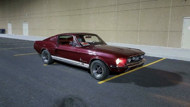 1967 mustang Fastback GT, nbsp;car has original 88,000miles on body. Car was restored in 2004 (motor has 500 miles on a total rebuild) has red delux interio, with overhead console .( in excellent condition). Has new rims and tires with no miles on them. Will give to buyer original rims and tires. Car runs and drives like new. Have all the original receipts to include the marti report . This is a matching numbers car .cwith front disc brakes . Again car has all receipts and to many parts to list. Buyer is responsible for shipping .thanks and good luck bidding if u have any questions please call 401-626-5332