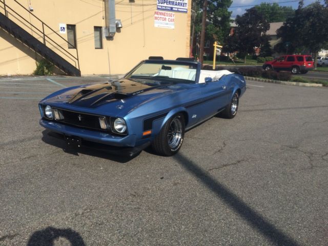 THIS CAR JUST CAME IN NUMBERS MATCHING REBUILT DRIVE TRAIN ITS GETTING A BRAND NEW WHITE CONVERTIBLE TOP PUT INSTALLED NOW.351 Cleveland motor, nbsp;.30 over with a competition cam, ifters, ush rods, alve springs, tc. It has a Edlebrock performer manifold with a 650cfm carb, nbsp;with a completely new fuel system from tank to carb. The bottom end of the motor has been completely refreshed, ew pistons, ods, ain and rod bearings. new hp oil pump and pick up. MSD distributor, nbsp;Hooker headers and a Flowmaster exhaust. Motor and new suspension, nd the rear has approximately 2,000 miles on them. Custom white interior with blue piping to match the paint, ll new dash, tc. It drives with a FMX trans with a Ford 9" rear with .355 gears. Also a new suspension from front to back, ncluding front coil over adjustable shocks. The body has absolutely no rust, ll original sheet metal, he undercaraige is super clean, s the floor boards and the trunk, NY QUESTIONS YOU MAY CALL ME AT 908 494-7644 HAVE MOST ORIGINAL PARTS COME WITH ORIGINAL AIR CLEANER AND VALVE COVERS PLUS MUCH MORE
