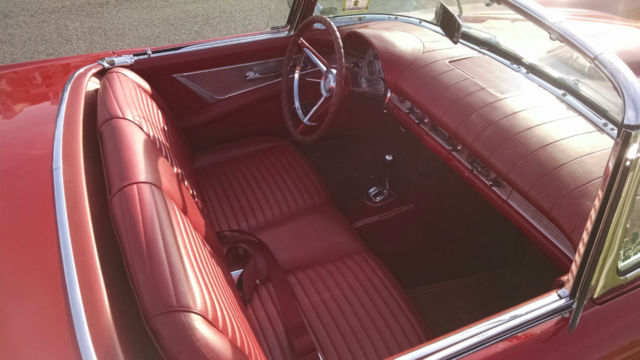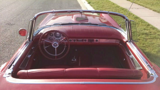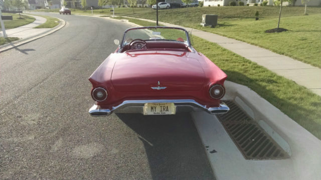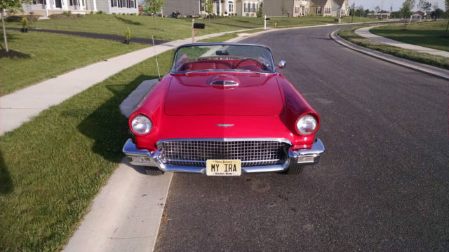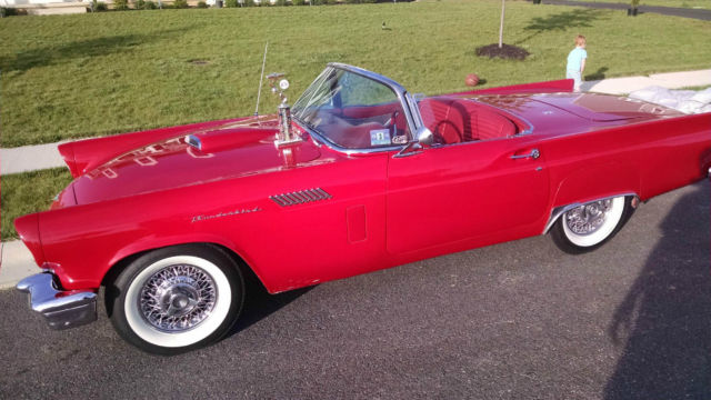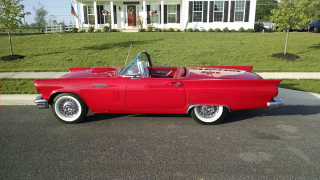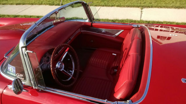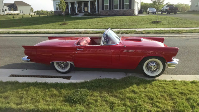 1957 Thunderbird Convertible. This is a pristine 57 T-Bird. Torch Red with the correct red interior. You will not find a better 57 T-bird at this price. This car is equipped with a 312 V8 Single 4 BBL Carb (D code) paired to an automatic trans. It is also equipped with power steering power brakes and power seats and power windows. The car comes with a white hardtop and the soft top that is behind the seat.This car was featured at the Volo Car Museum (Note the Sticker on the Windshield) and they have a high standard of what cars they will accept.