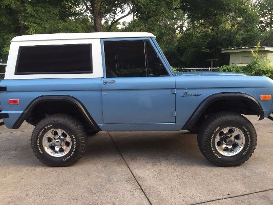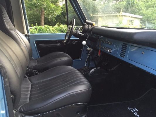 Beautiful 1970 Antique/Collectible Ford Bronco, ompletely rebuilt, 02V8, ew radiator, ew brakes, Speed transmission with hurst shifter, ew steering wheel, eupholstered seats, ew PPG Paint (Brittany, lue, oly) BF Goodrich 31" tires, ew rims, ew carpet. Its has two seats up front, nd one long seat in the back, ake black leather. No reasonable offer will be refused. Part receipts available upon request.