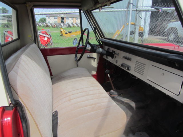 1965 4x4 Half Cab "Bronco" Exterior Red Interior- Tan Engine 6cyl. "Rebuilt", Transmission- 3 speed manual, ll glass good, small star in windshield,