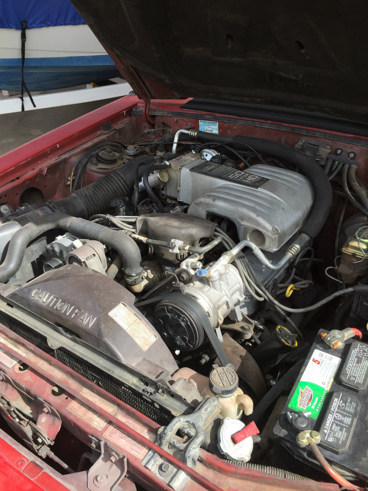 Red with new white top with glass rear window. Interior intact. cloth faded with one small tear on side of drivers seat. Non-smoker owned. Pioneer stereo included. Runs great. Newer tires. New cold AC. Power windows/locks.