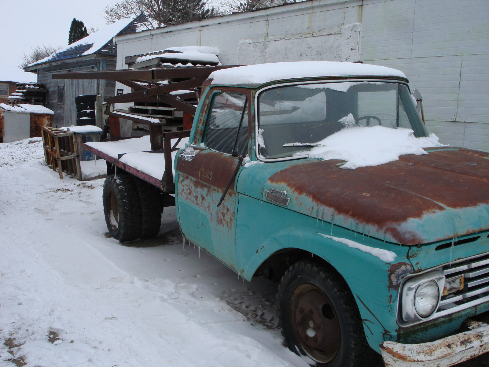 I have a 1963 Ford F350 Dually with a flatbed with electric tilt bed with an attached scissor lift run by hydraulics. It is a manual on the floor. minimal rust. ran when I parked it. has a chrome dash. Cannot store indoors anymore and do not have time to restore this gem. Lots of tread on the tires. one is NOS (new old stock) Got this truck from an old farmer. speedometer reads 0. 310 Am willing to consider all reasonable offers and/or trades. In line 6 cylinder