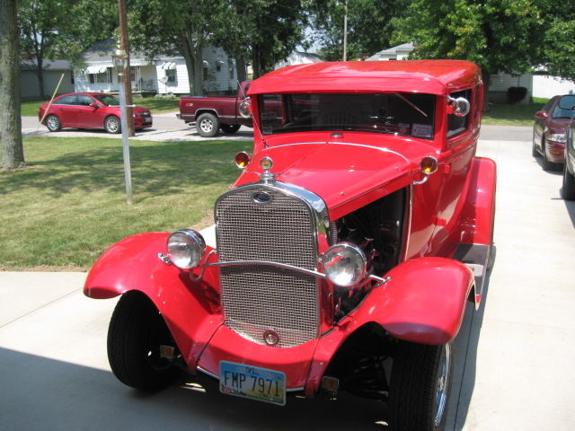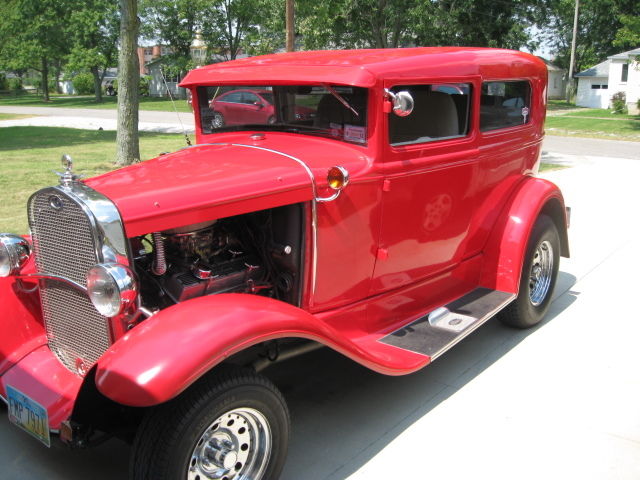 1930 Model A Ford Street Rod, Metal body, Fiberglass Fenders, Chevy Crate 350 with automatic transmission. Few oil leaks, Older paint, Top has been chopped.