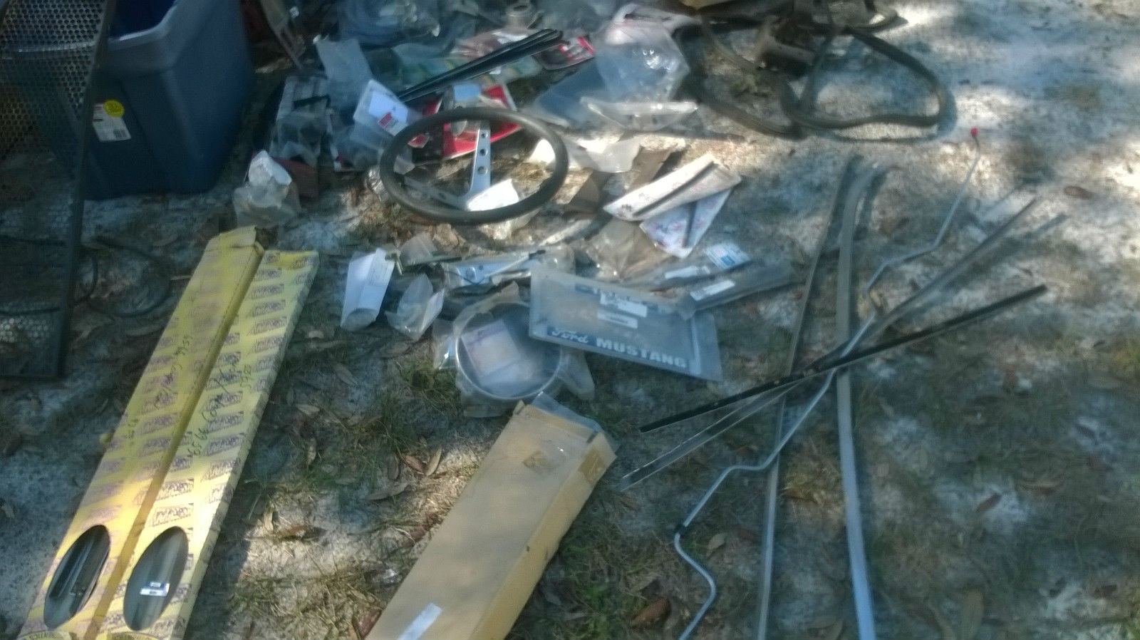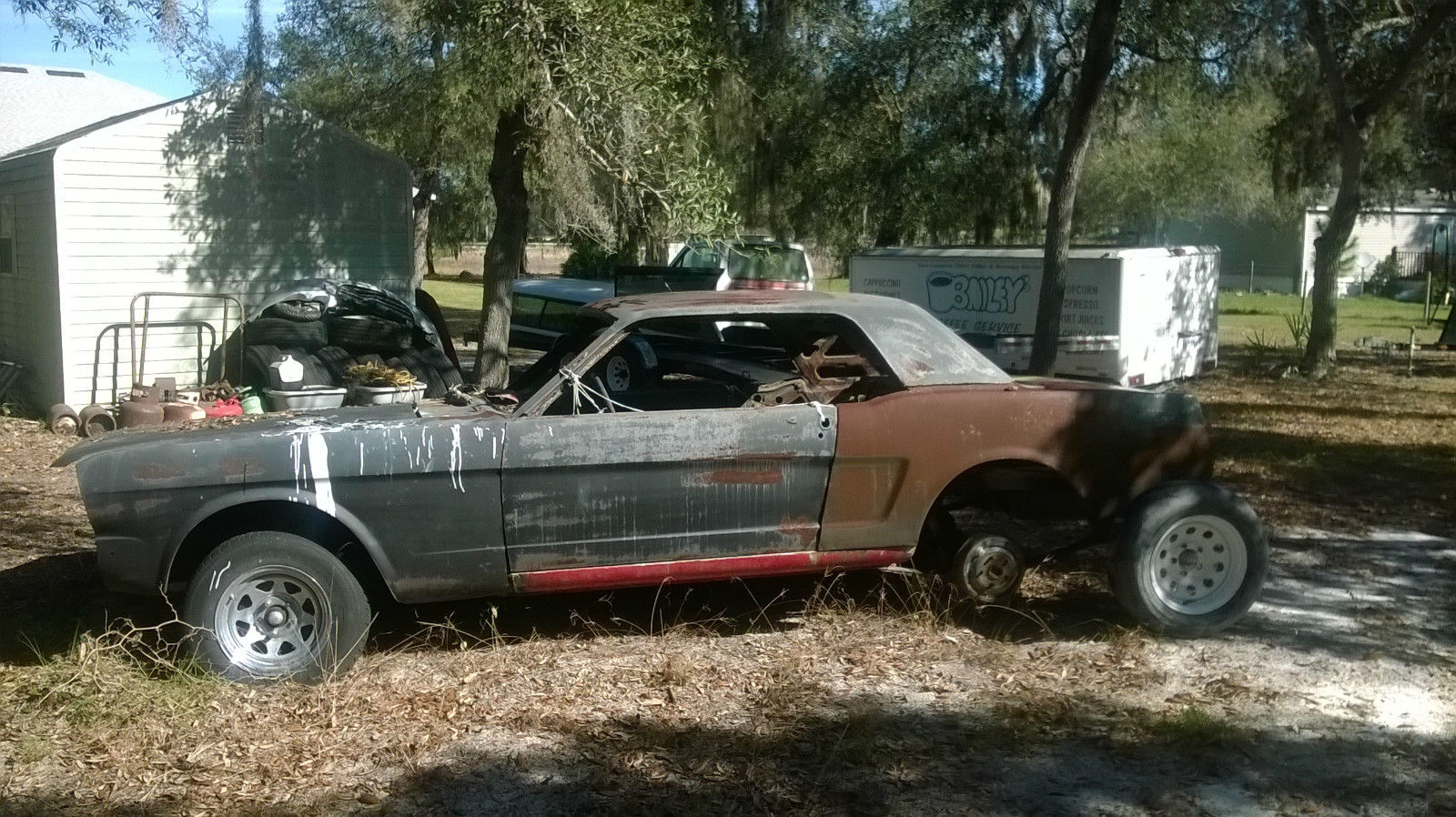 this car has lots of new parts. extra motor 289 and C4 transmission some parts missing on motor. car body not welded together except floor pans trunk pan. shock towers tack welded. Original motor and trans numbers match. rear quarter panels not welded. clamped in place . title from Texas Farther in law sigh it don't know what to do about that. but car and parts as is. new parts about 3 years old most still in boxes car body surface rust. no rot holes. also boxes of parts door parts all there I can't do anything with this car I'm disabled all body parts were bought new car set out side last 4 months . have side window glass door glass right side head light benzel left side new have one ford books 1965 motor repair manual . have 1960 motor repair manual and one 1970 also 1 1965 mustang restoration guide no sets buyer must arrange pick up.