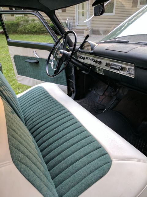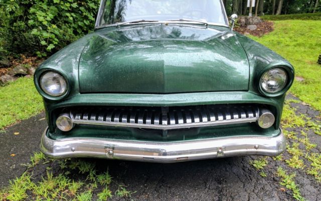 1954 Ford Customline Tudor. VIN Search is easy to decipher model and specs, Pinetree Green, Y Block, Ect. NiceBODY:The bodywork and paint was done within the last year, decent job, but not show quality. Mild customization-door handles were shaved and head and tail lights slightly altered. Grill is nice, emblems are off. Nice front seat. Needs backseat, window cranks (the windows work), and a rug. The heater core is there but the heat has been disconnected.All Glass good with exception of D/S Window that has a chip at the top(that window also only cranks down 3/4's of the way). The vent window posts were removed in the customization. Bumpers are solid but need re-chrome or paint.Solid Floors, Trunk and Frame. Interior has light wear patina and could be waxed or painted. Dashboard all original and untouched.Car was converted to 12 V with an alternator and only head/running and brake lights are currently wired.DRIVETRAIN:This is an original Motor and Transmission Car. This car is registered and insured in CT and I drive it on 30 and 60 mile runs on weekends.This car is over 60 years old but rides like a cream puff- smooth. Motor starts and idles consistently.Burns a little oil on the longer trip- standard for this motor type. Transmission shifts smooth and is heavy duty compared to today's standards. Exhaust is there, but I would put a flow master 10 and replace pipe back as it is pitting.I was going to replace rims/tires with late model torque thrust or mustang bullet wheels as fitted, 17" with a 245/45/17 look great (as pictured) 2" spacers needed in front.It currently has rims 14" in front and 15" in back, hence the different caps. You can also go with the white walls and mooncaps, but everyone is different, so before I sink more $ into something I like that others may not, I offer at a workable price. Fuel Tank and Lines were replaced. Car brakes good, booster in good working, non leaking condition. No Power Steering.