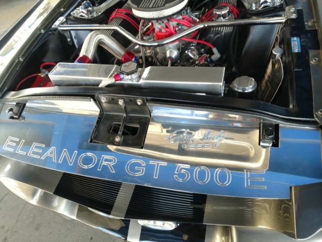 | | Engine Drive Train: PLEASE SEE LAST 2 PICS TO PLAY VIDEO* TRUE ONE OF A KIND FE BIG BLOCK... WITH SHELBY 427FE VALVE COVERS! New aluminum polished serpentine pulleys, new Edelbrock aluminum polished performer intake, new Holley upgraded 'Brawler' carburetor, new Shelby Cobra air cleaner, new 4 row aluminum radiator, new USA Derale high output electric fans, new aluminum billet polished fan shroud, new chrome 100 amp alternator, upgraded power steering system, new ram cylinder, new rebuilt control valve and hoses, new front KYB Racing suspension system and new coil shocks in rear. Rebuilt and re-geared rear-end, 4 wheel USA made disc brakes, 5 speed Ford Racing transmission. New inner and outer tie rods, new polished driveshaft, new gas tank, new fuel lines, new brake lines, new American made four wheel drill and slotted disc brakes, new master cylinder, new distributor, new clutch, new flywheel, new pressure plate. Custom Carrol Shelby embossed Eleanor engine cover... giving it a true one of a kind exotic look. New Coy wheels, new Shelby style bullet mirrors, new Shelby GT500 badges... on both interior and exterior of car, new billet grille, new billet aluminum polished grille cover with Shelby Eleanor embossed #358. Interior: New 'Carrol Shelby' signature front black sport bucket seats and new black 'Carrol Shelby' signature rear sport seats. New glass throughout car, new trim and weather stripping, new custom white Autometer Phantom gauges, exotic mahogany wood grained steering wheel with Shelby Cobra Snake in middle, new brushed aluminum dash and deluxe interior package, new TCP billet pedals (exact from gone in 60 seconds), new 'Go Baby Go' shifter, new carpet inside and trunk area too, new interior quarter panel lights. UPGRADED Flaming River TILT steering column. Also... new interior that smells like a new car, Bluetooth radio with custom mounted speakers in front and back (4 total), new dash pad, new crank windows, new door handles (interior and exterior), new Eleanor correct tail lights, new 5 3/4 Tribar X headlights, new emergency brake handle... absolutely a stunning GT500E! A true beauty... see pics and video BELOW!! |