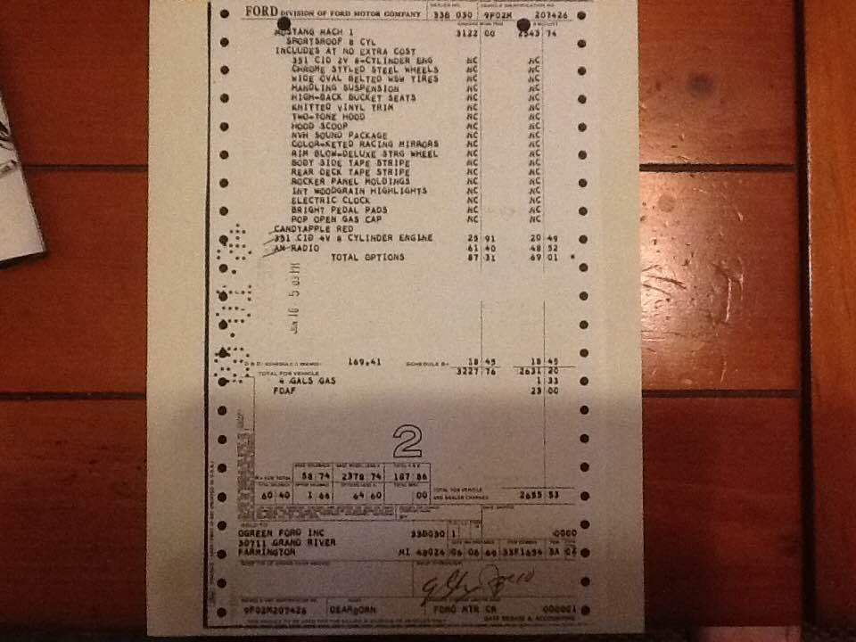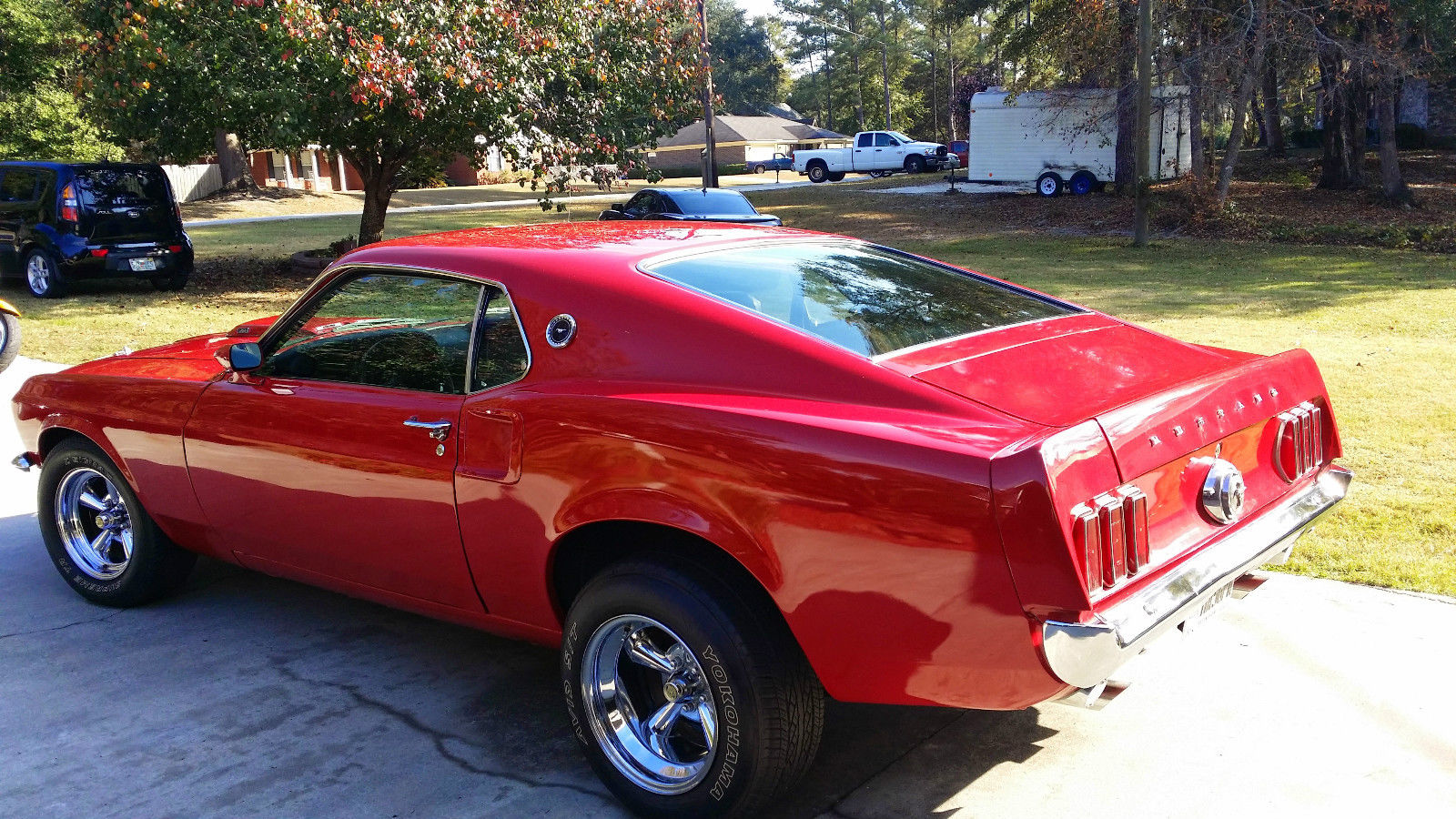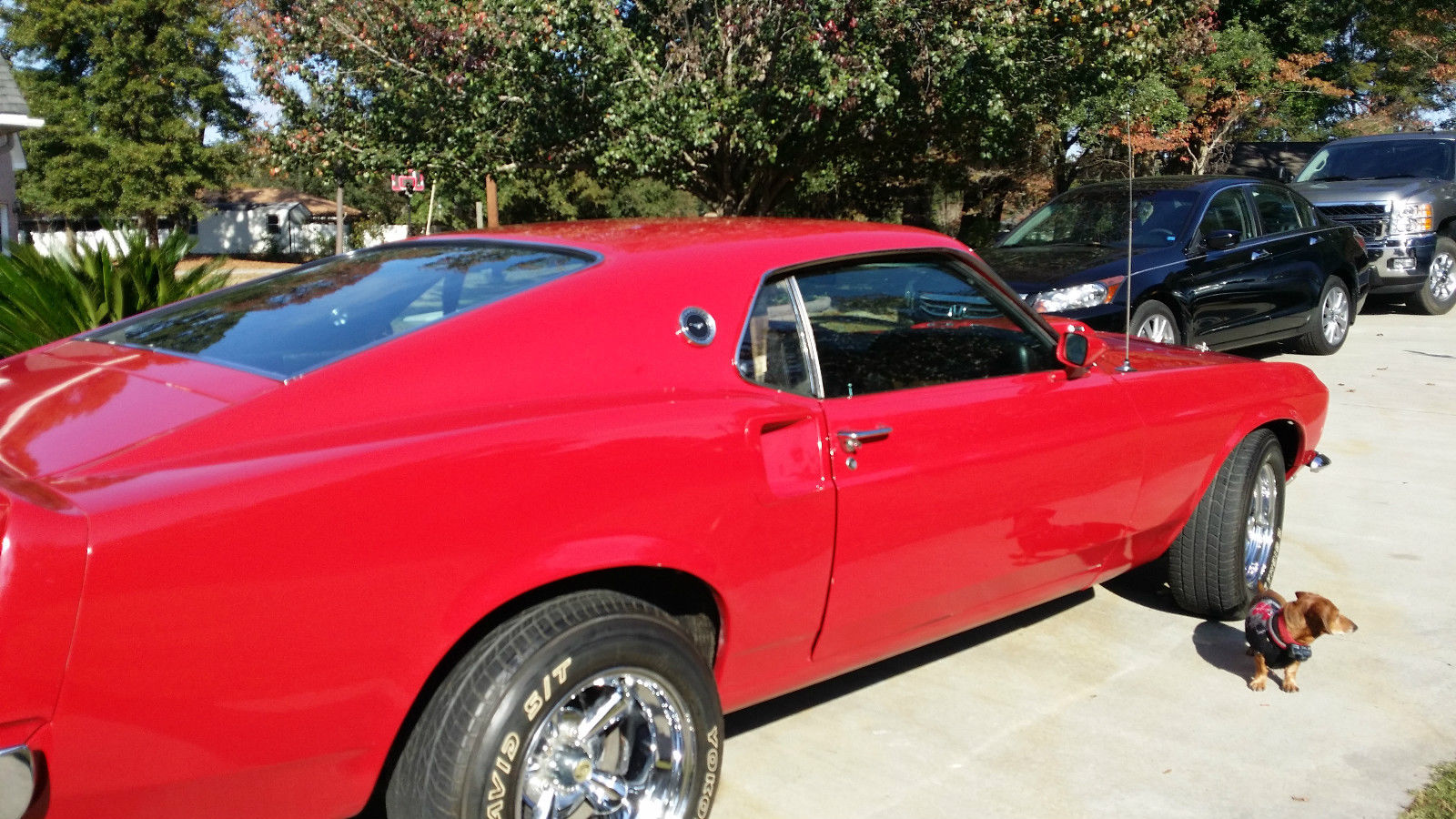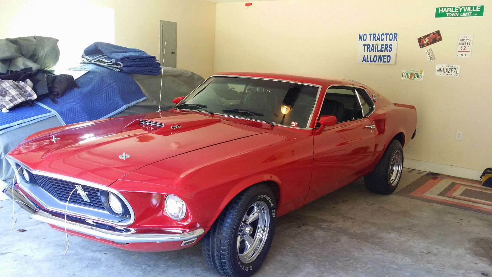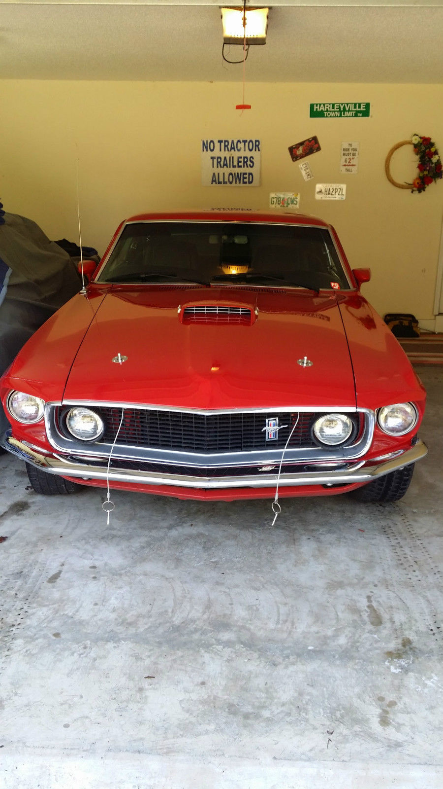 The good. This resto mode is several years old. In this father son adventure a lot of fun was had along with a ton of money spent. The car has less than two thousand miles on the rebuilt drive train that includes a 1969 351w . 30 over with a heavy cam. 4 rebuilt with a shift kit and followed by a 325 open 9 inch. The interior was completely redone with new foam front and rear along with new carpet. The only glass that is not original is the front windshield. Front disc brake upgrade all new steel brake and fuel line with a new tank. The paint job I would say is fair definitely looks good a foot away but not a Gas Monkey or Foose Paint job. I have attached documents that match the vin number for your review. As you can see from the pictures I did not two tone the hood as it came from the factory. this form had me put an exact mileage number the odometer I believe reads around 78k but it has more than likely rolled over I have the title in handThe bad. When we acquired this Mustang it was totally disassembled and the vin tag was lost along with some other very small items. I made my own vin tag to match the title and that vin number matches the vin stamped in the frame under the fenders. There are a couple of chips in the paint which I have done my best to point out. There is also a bleed thru spot that I am assuming came from the lead where the roof and the quarter panel joins. This is a lighter red about the size of a half dollar which I have also pointed out in the photo . The headliner as some small wrinkles in it but is new. the rear glass seal leaks in right corner. The rims have some small pitting and the rear tires need to be replaced. The heads that are currently installed are not the matching heads to the motor I do have them but they are unrestored. The rear bumper was tagged slightly in a parking lot I have a pic pointing that out. The dash clock does not work. The dash is covered not a new dash. This car did not come with the fold down rear seat. The picture where I am pointing at the lower front of the passengers door that is a corrosion bubble. I do not know the extent. If you have less than 10 bids please contact me first or I will have your bidding blocked. This car is for sale locally and I reserve the right to end this auction at anytimeI have done my best to describe this car condition. With that said I have purchased items over the web and I always have questions. Please ask any questions you would like. The car is available for inspections. I will send pics upon request if there is something you would like a close up of. On Nov-26-14 at 10:17:34 PST. seller added the following information:I apologize the Transmission is the original FMX rebuilt with shift kit not C-4