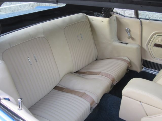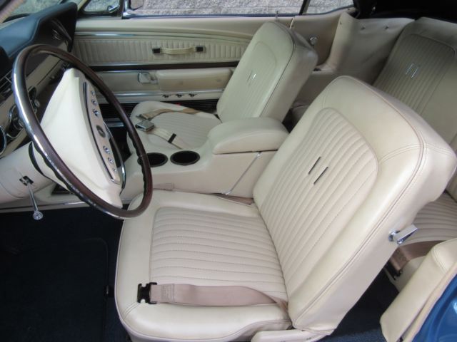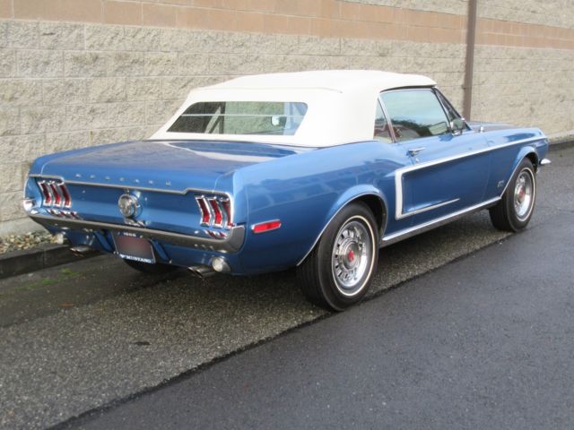 Description: 1968 Ford Mustang GT Convertible Beyond Rare - 1 Of 43 Paint/ Trim Code Very nice Restoration has had a nut & bolt restoration, one of the best in the world 1 of 493 with this motor/transmission code390 c.i. 325hp 4v, 4-speedFactory Air Conditioning 9-inch Ford 3.00 limited slip axle, tilt away steering wheel AM-FM stereo, AC (Selectaire), tinted glass, beautiful Acapulco blue White power top, parchment décor buckets, P.S., P.D.B. This car is better than new, documented by Marti report V.I.N. 8F03S201509 102,807 miles $69,950 For more info please call 425-343-7079 or 206-683-5855