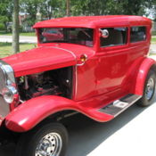 Body: 1930 Ford Model A original steel body. The body is solid with some awesome surface patina. There is no rust-through anywhere. It's primer black with green metal flake scallops. The deck lid, cowl, and bat-wing air cleaner were all pinstriped by Skratch. The doors are tack welded shut (hop-in, hop-out). The hinges are no longer there. If you're adventurous enough, they could be made to open again.Gauges: The gauges are Bonspeed "Roulette" series gauges (Speedo/Tach/Oil/Gas/Volt/Temp). They are super cool. For peace of mind, I disconnected the oil and temp gauge (it's like reading cartoon numbers) and installed a much more precise Oil and Temp gauge that is off to the side. Seats: The 'backs' are secured in place to the body. The 'butts' are not secured. I never secured them because it allowed me to adjust my position and that of the passenger.