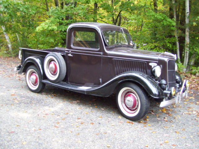 This 1936 Ford is a survivor. a barn find. All steel. All original. Columbia 2 speed rear. manual. Flathead V-8. also original. All #'s match. appears to be original black paint. Drive this truck now. 6 volt system. Never modified. V-8 is a 21 bolt. providing 85 hp. All options that were available at the time of manufacture. swing-out windshield. flashlight holder. side mount tire. white walls. Original "Ford" scripted head lamp glass! Fog lights. bumper guards. radio. even a cigar lighter. Artillery wheels. also. as original. Appears to be black/brown two-tone. Full fenders being black. cab. bed. etc. being brown. Oklahoma truck. NO RUST. Quite a find. Correct black FULLY upholstered interior. Dual tail lamps. heater. and hinged mirrors. All you could want is here on this truck. Accessory directionals 1950's style. Not a consignment sale. nbsp;