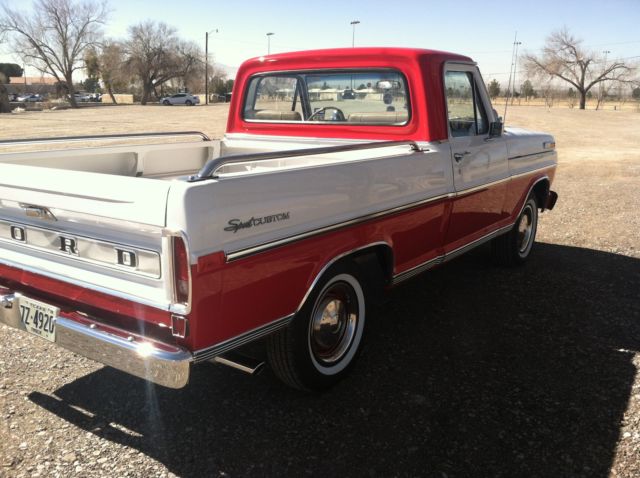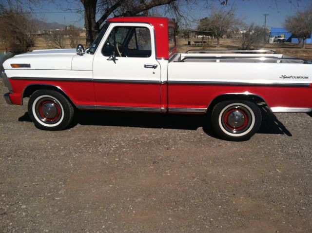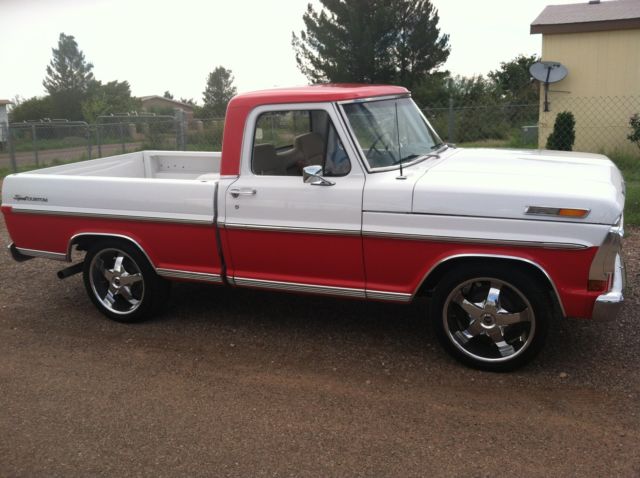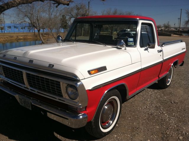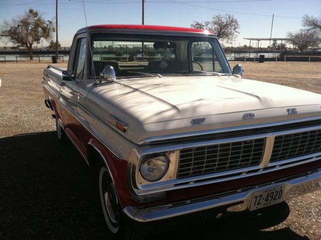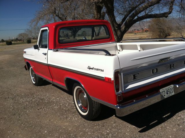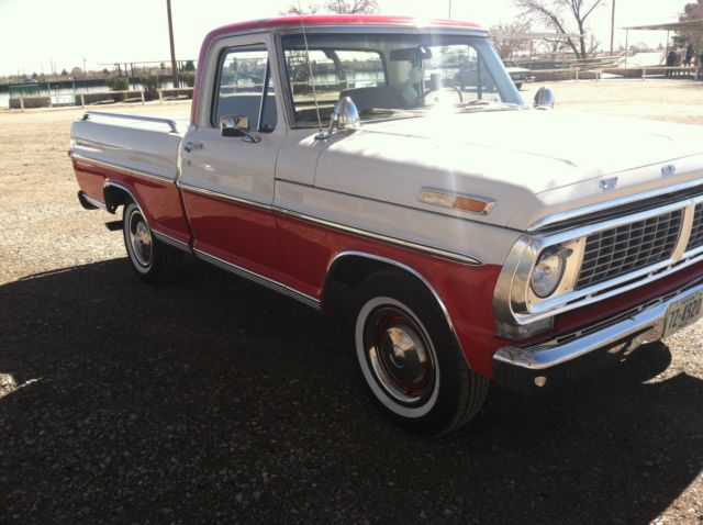 You are biding on a 1970 Ford short bed that is a frame off restoration. Pictures will speak for themselves the truck runs smooth and straight has new tires. new front brakes. front brake lines the transmission and motor were rebuild a couple of years ago. They have about 2. 000 miles of rebuilt ( engine and transmission). The truck does have some 20s with nice rims or original tires and rims I have put pictures with original rims and the 20s it does have the original radio does work as well. All gages on the truck work it has a new heater core and new vent tubes and cables with a heater control. This is a very awesome truck now for the bad this truck is a custom short bed from a long bed but it drives with no issues. Thank you for looking if you have any questions please feel free to call at 915-241-1549.